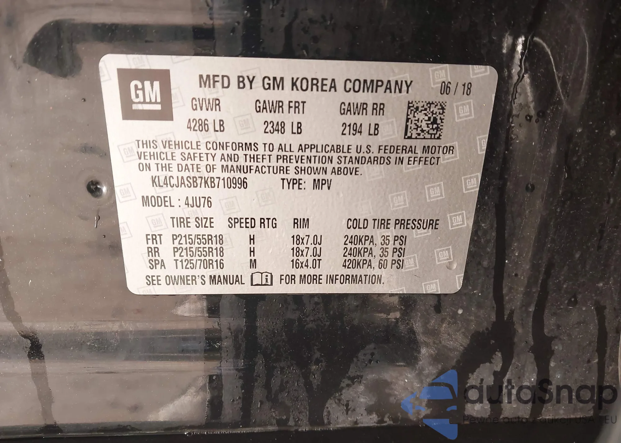 • VIN KL4CJASB7KB710996