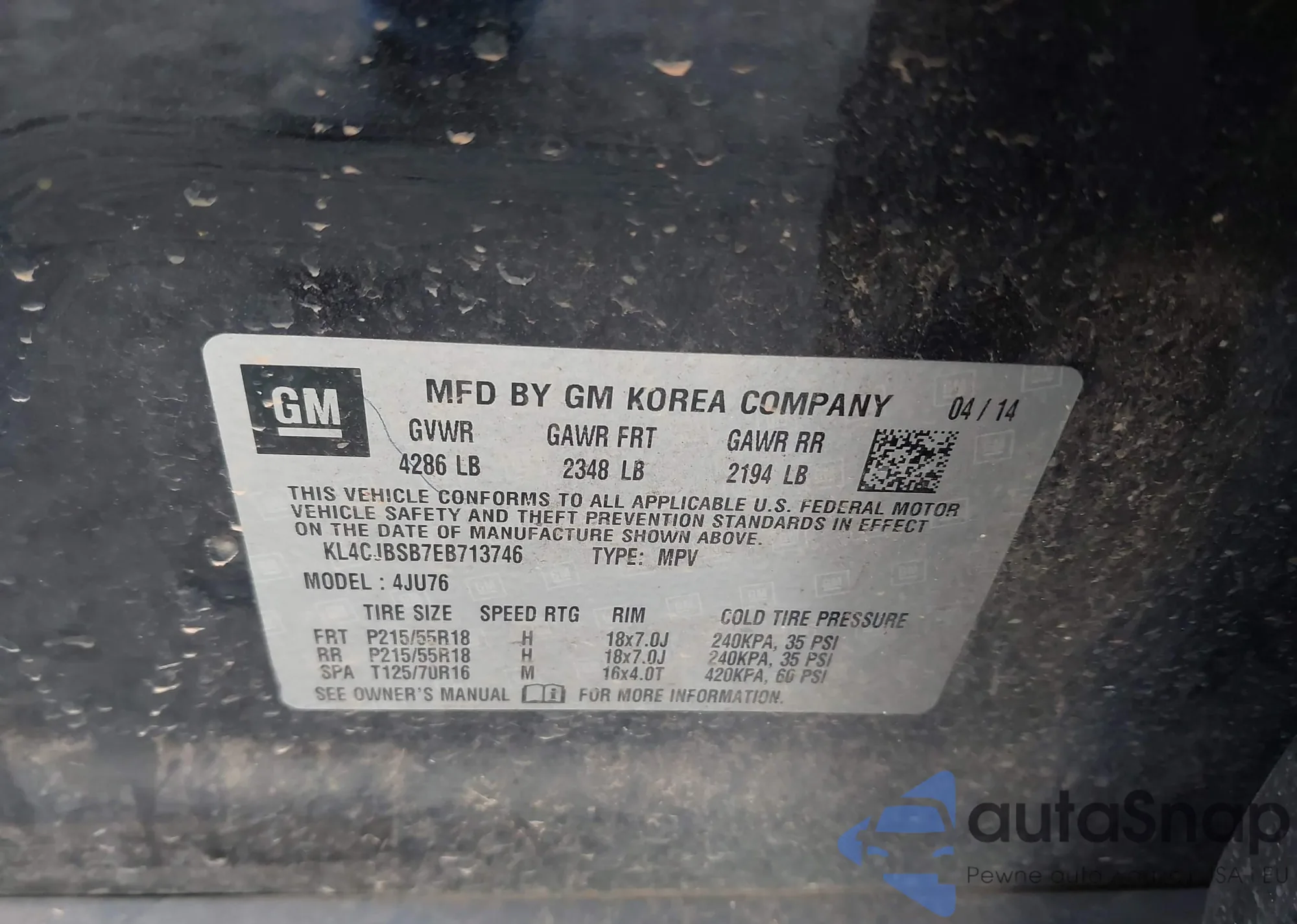 • VIN KL4CJBSB7EB713746