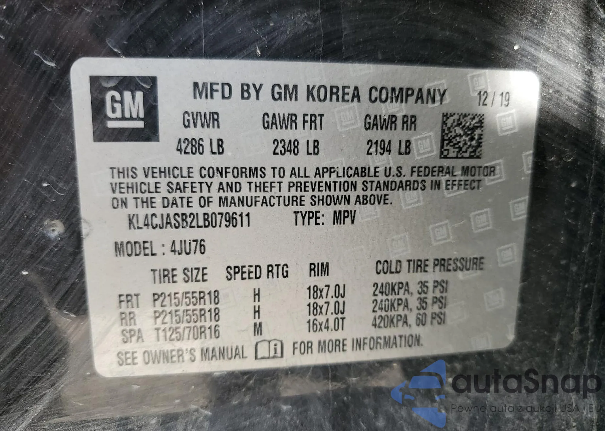 • VIN KL4CJASB2LB079611