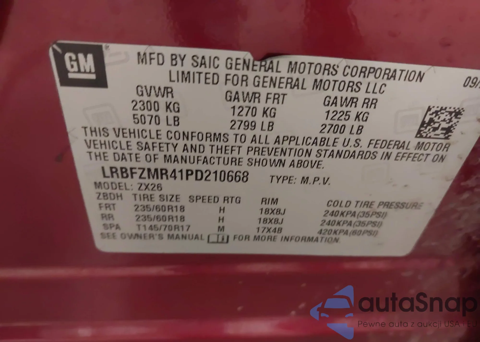 LOT: 44050865 VIN: LRBFZMR41PD210668