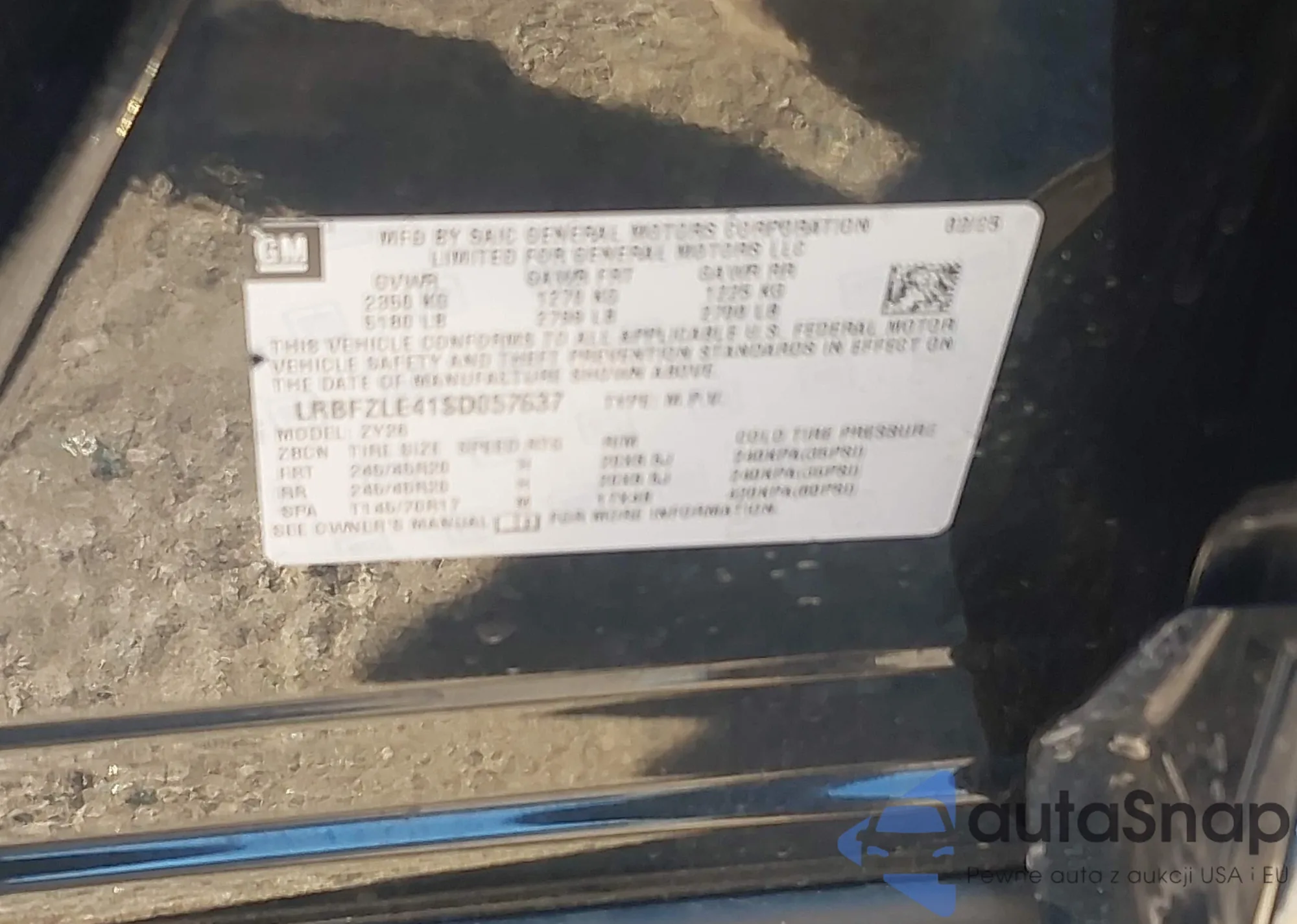 LOT: 44062105 VIN: LRBFZLE41SD057637
