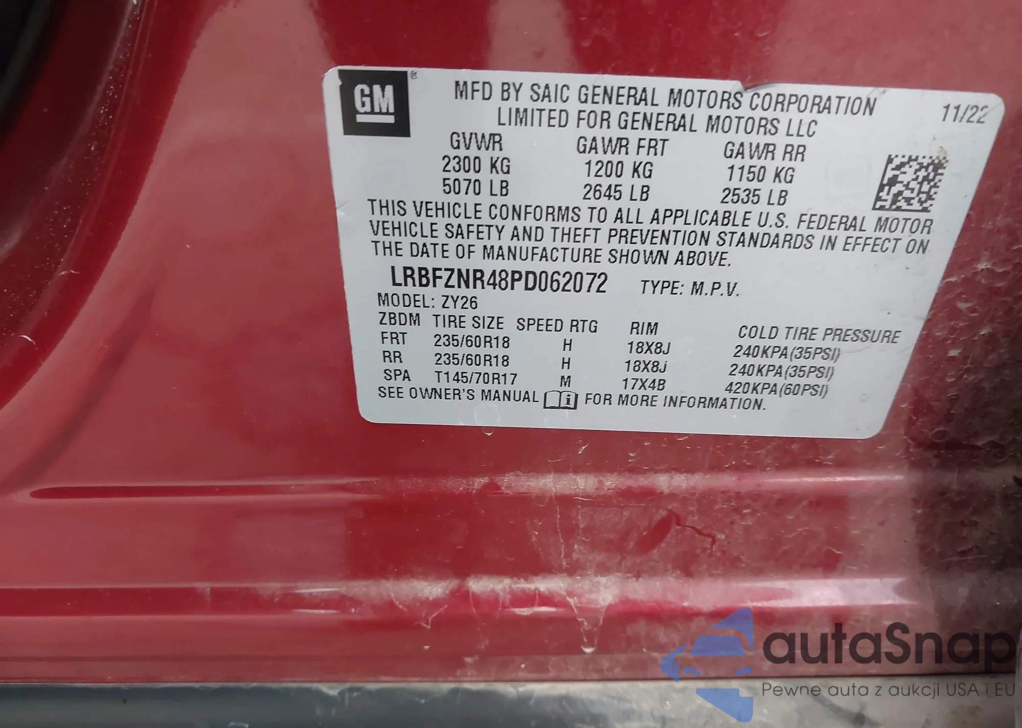 • VIN LRBFZNR48PD062072