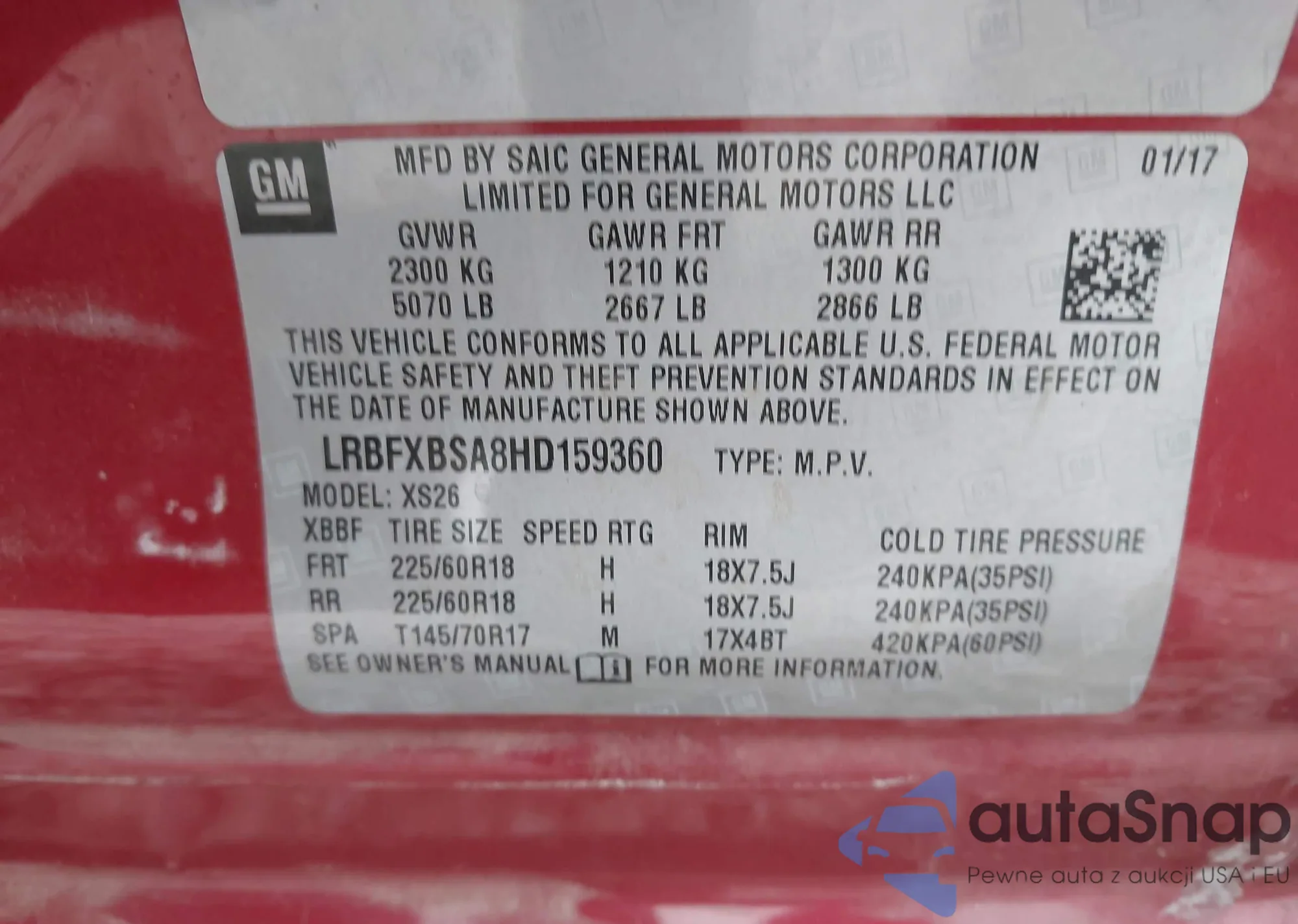 • VIN LRBFXBSA8HD159360