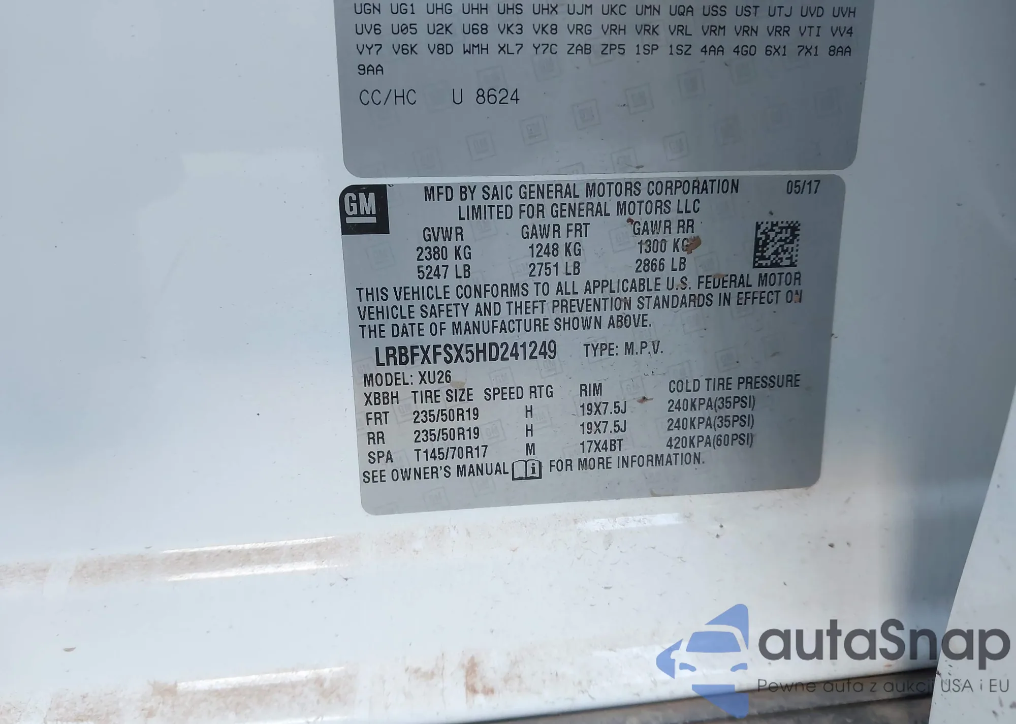 LOT: 43883133 VIN: LRBFXFSX5HD241249