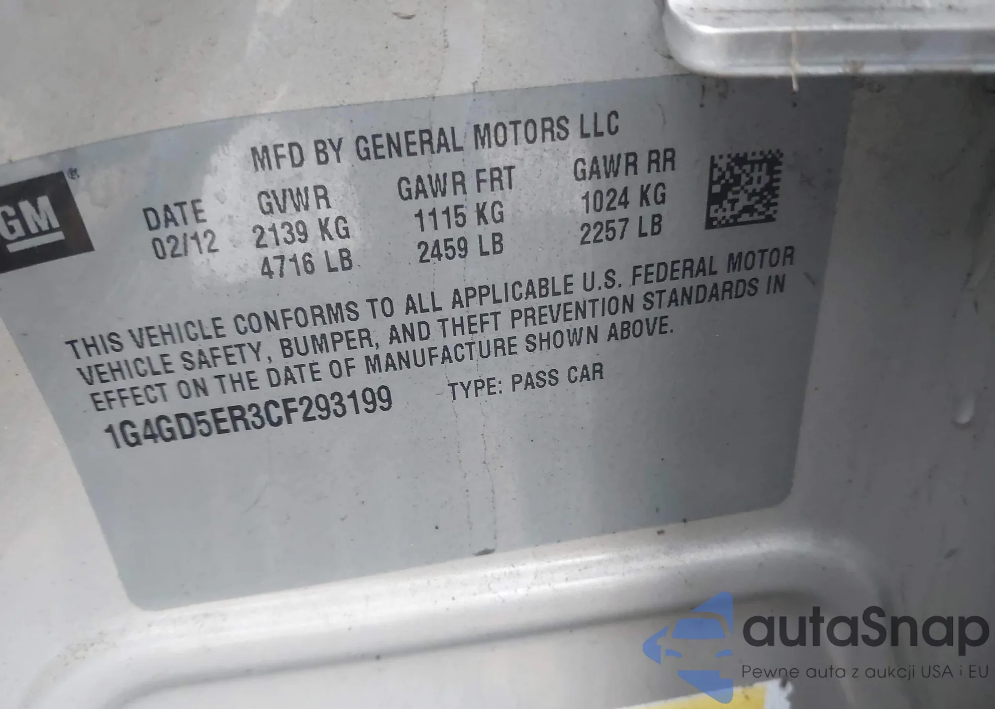 LOT: 43752477 VIN: 1G4GD5ER3CF293199