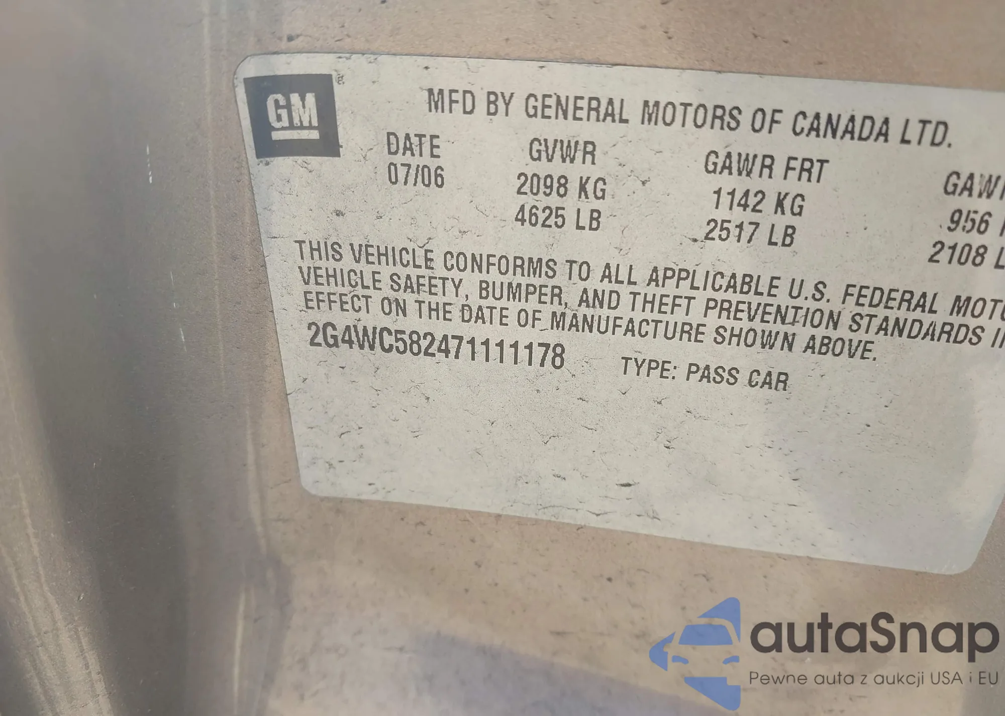 LOT: 44019761 VIN: 2G4WC582471111178