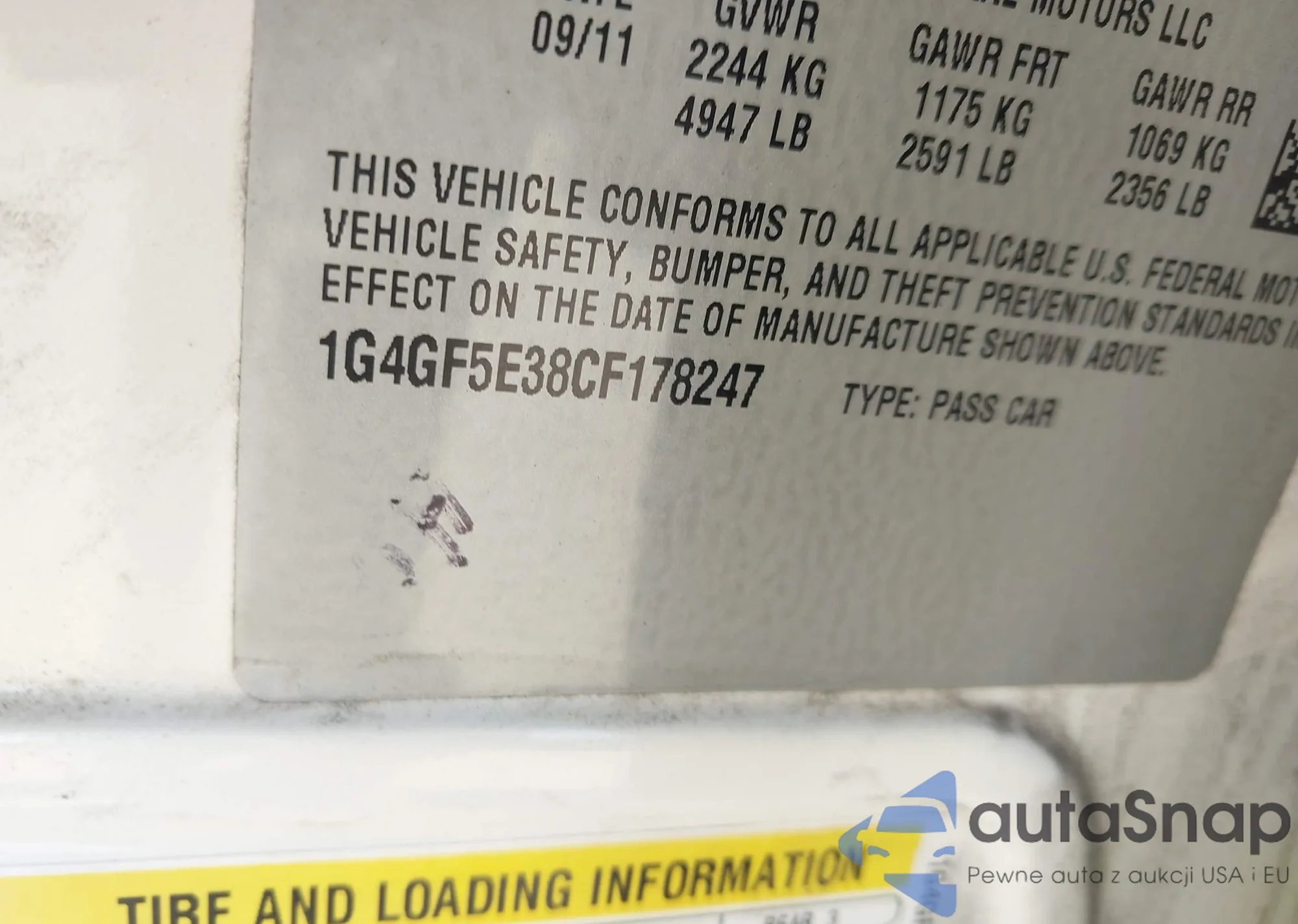 LOT: 44087512 VIN: 1G4GF5E38CF178247
