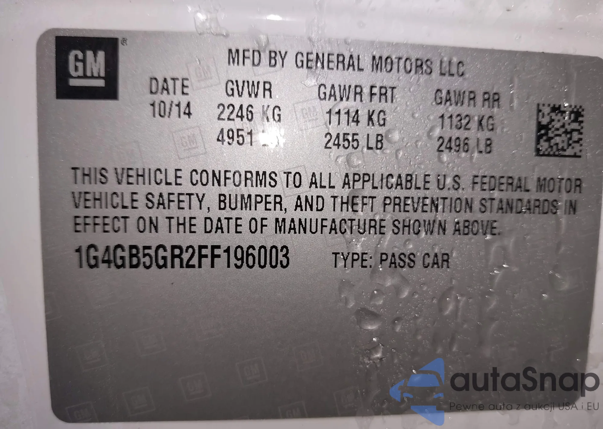 • VIN 1G4GB5GR2FF196003