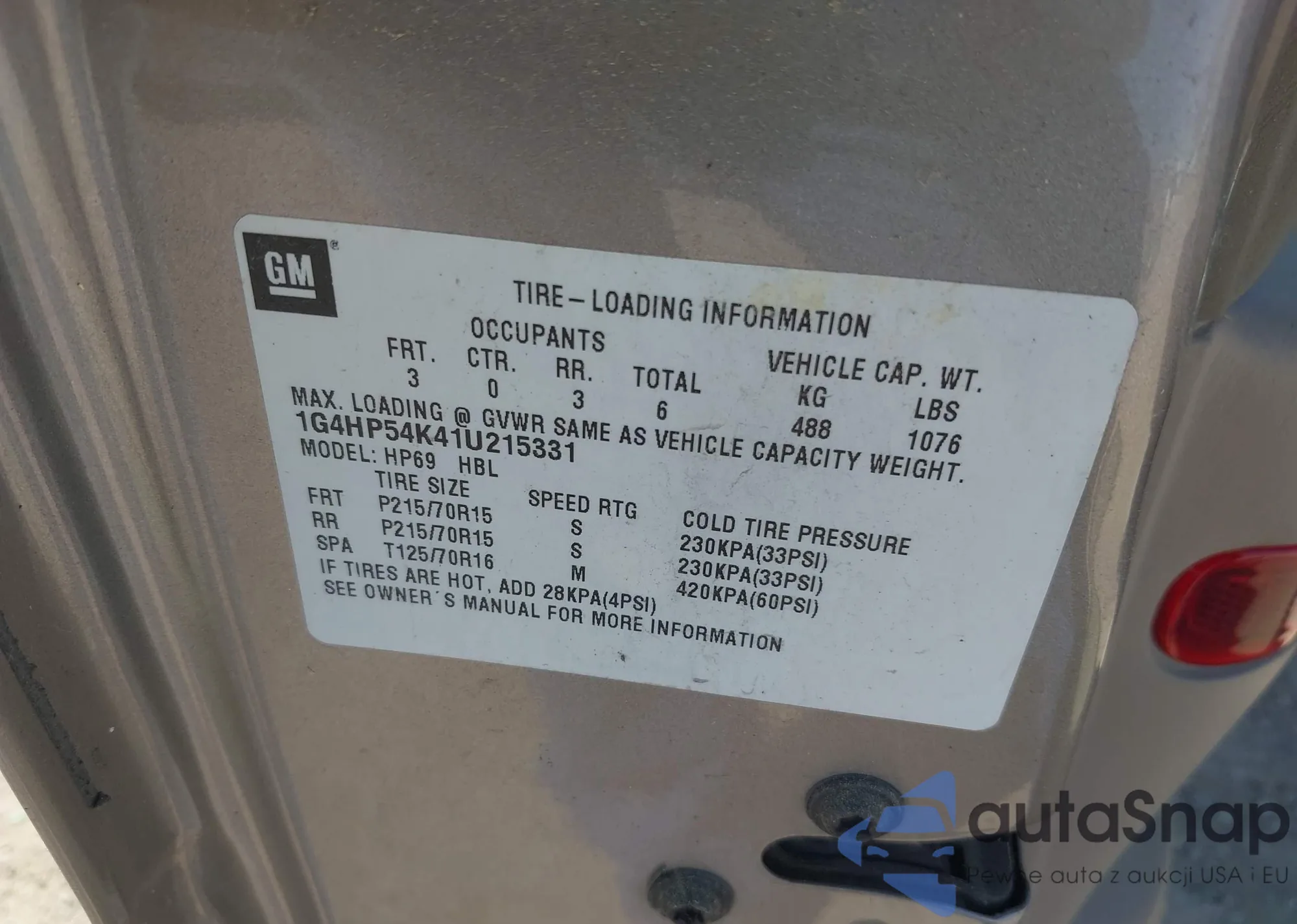 • VIN 1G4HP54K41U215331