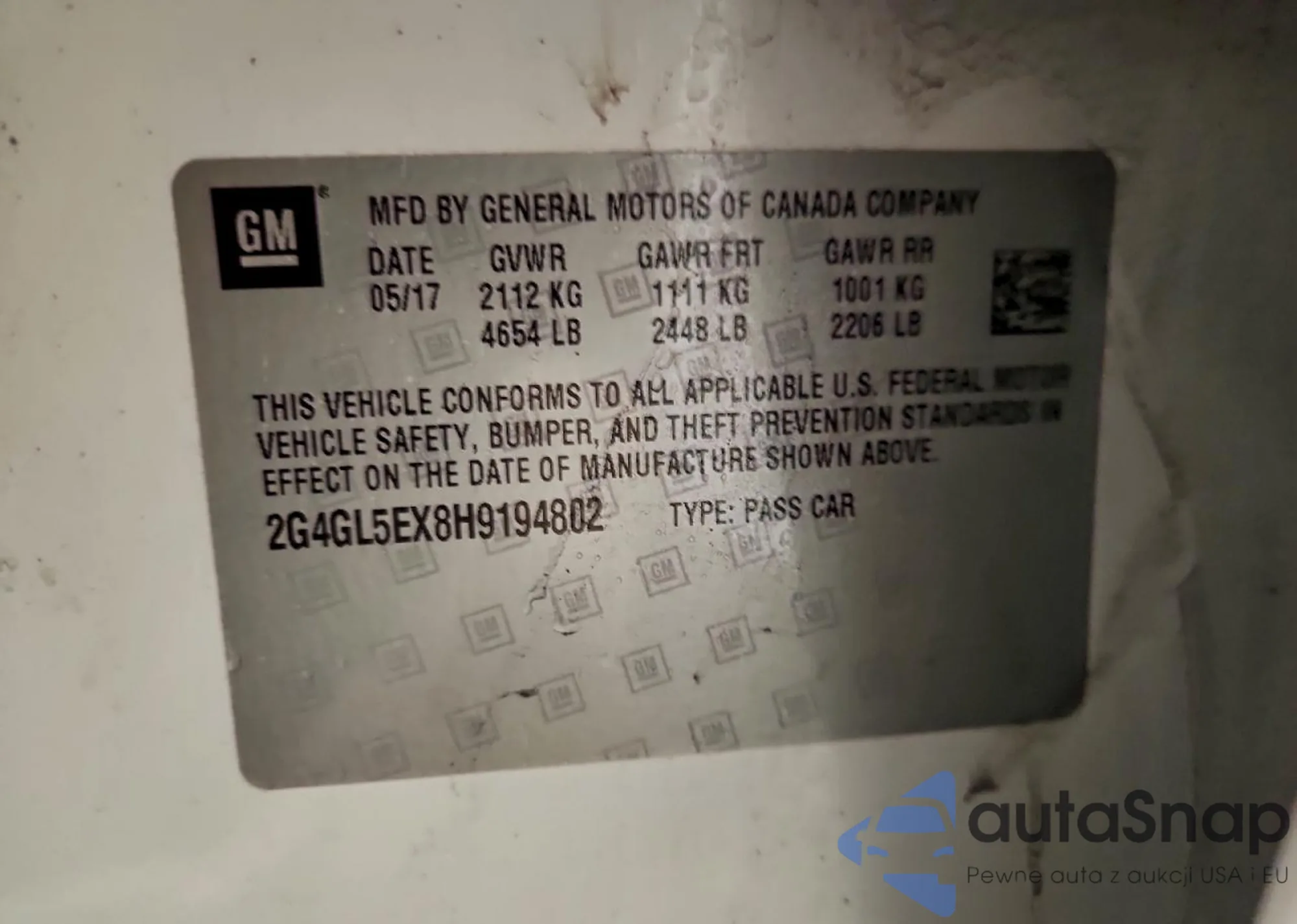 • VIN 2G4GL5EX8H9194802