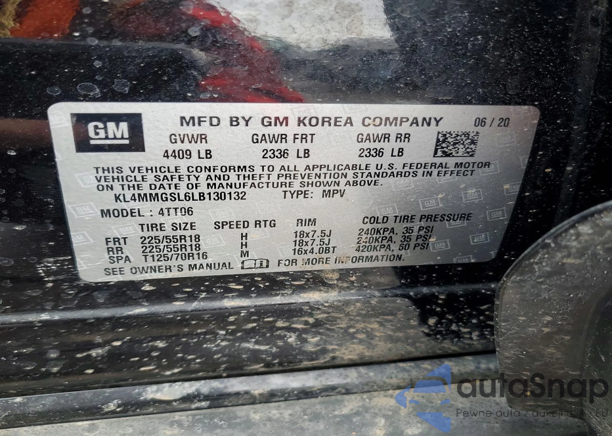• VIN KL4MMGSL6LB130132
