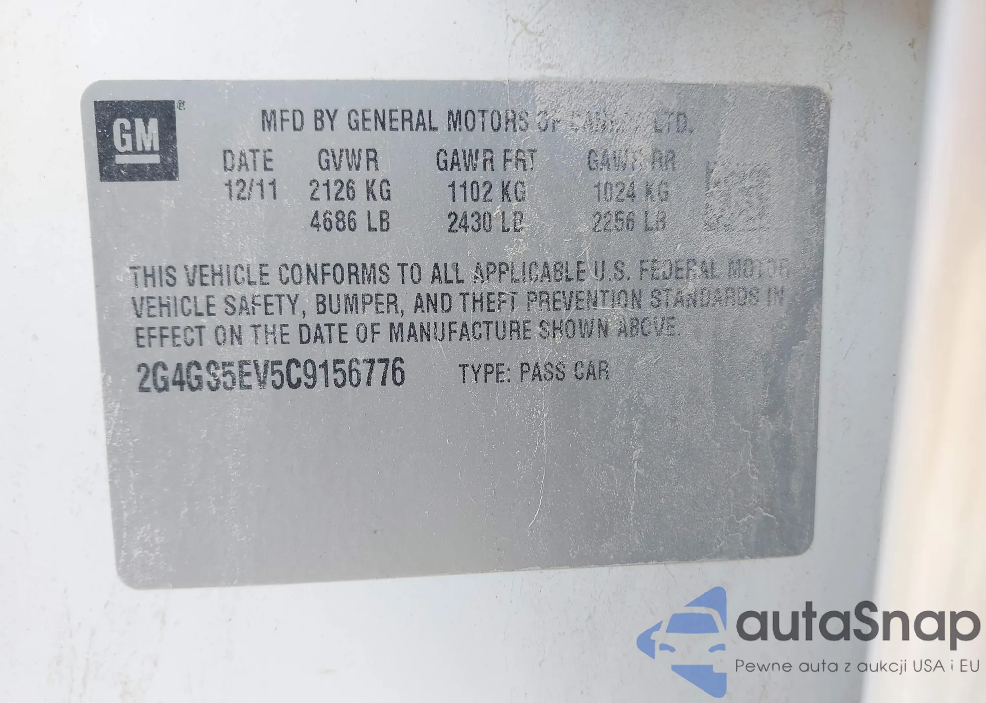 • VIN 2G4GS5EV5C9156776
