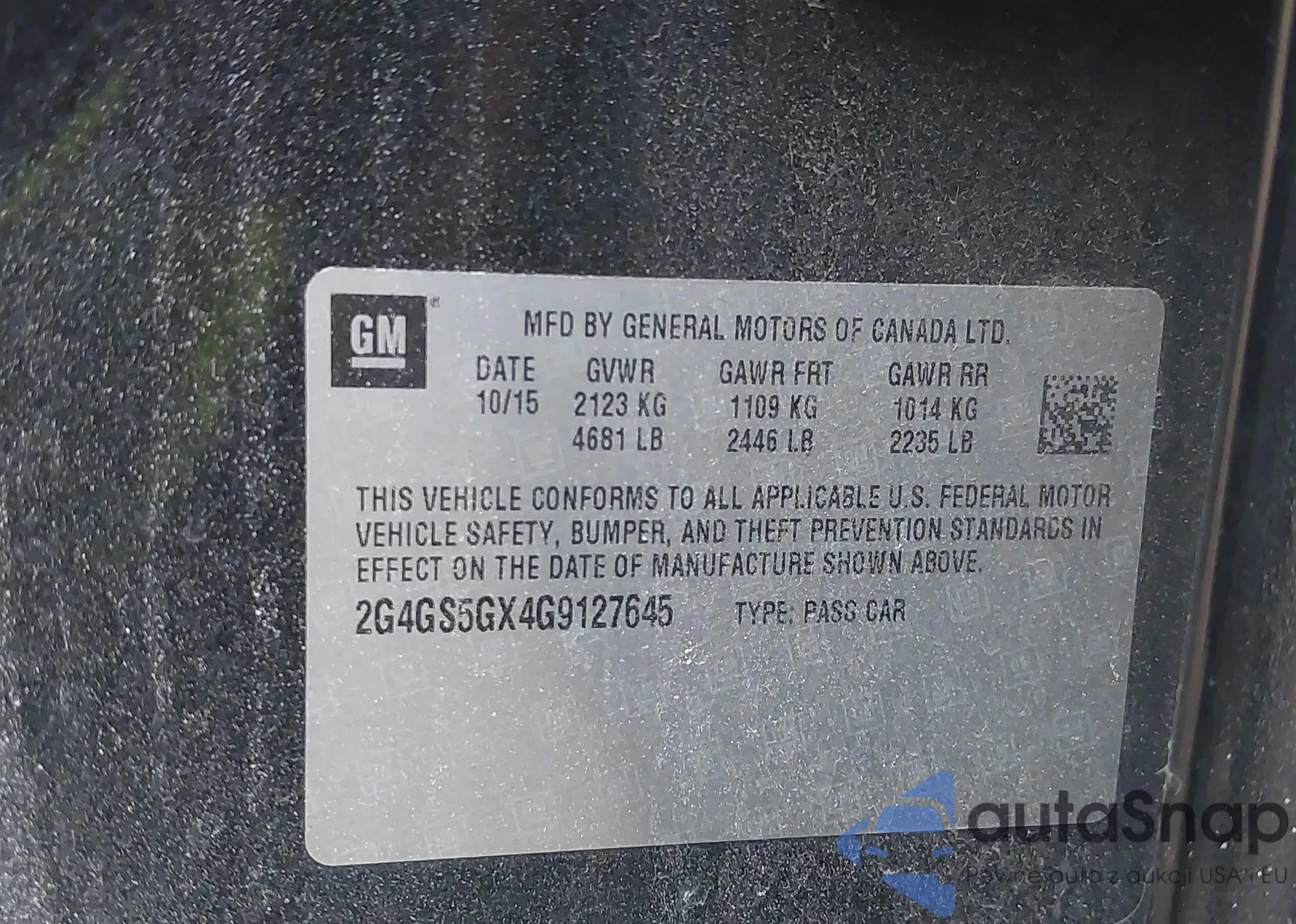 • VIN 2G4GS5GX4G9127645