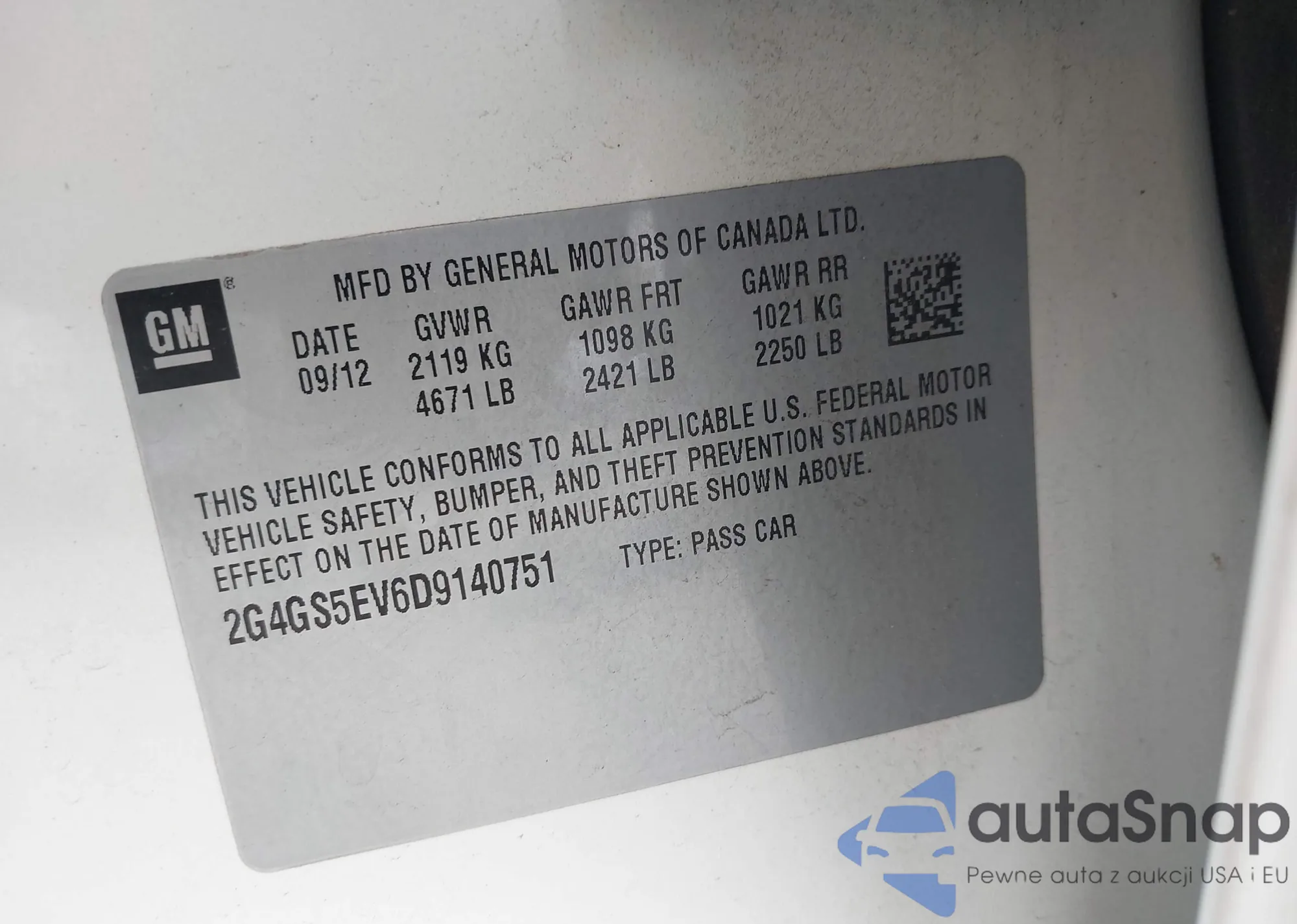 • VIN 2G4GS5EV6D9140751