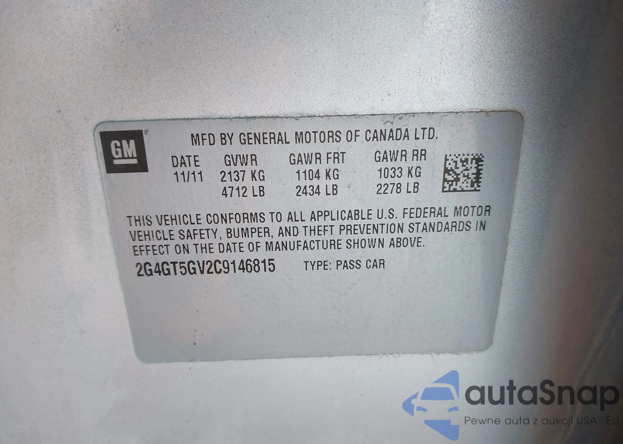 • VIN 2G4GT5GV2C9146815