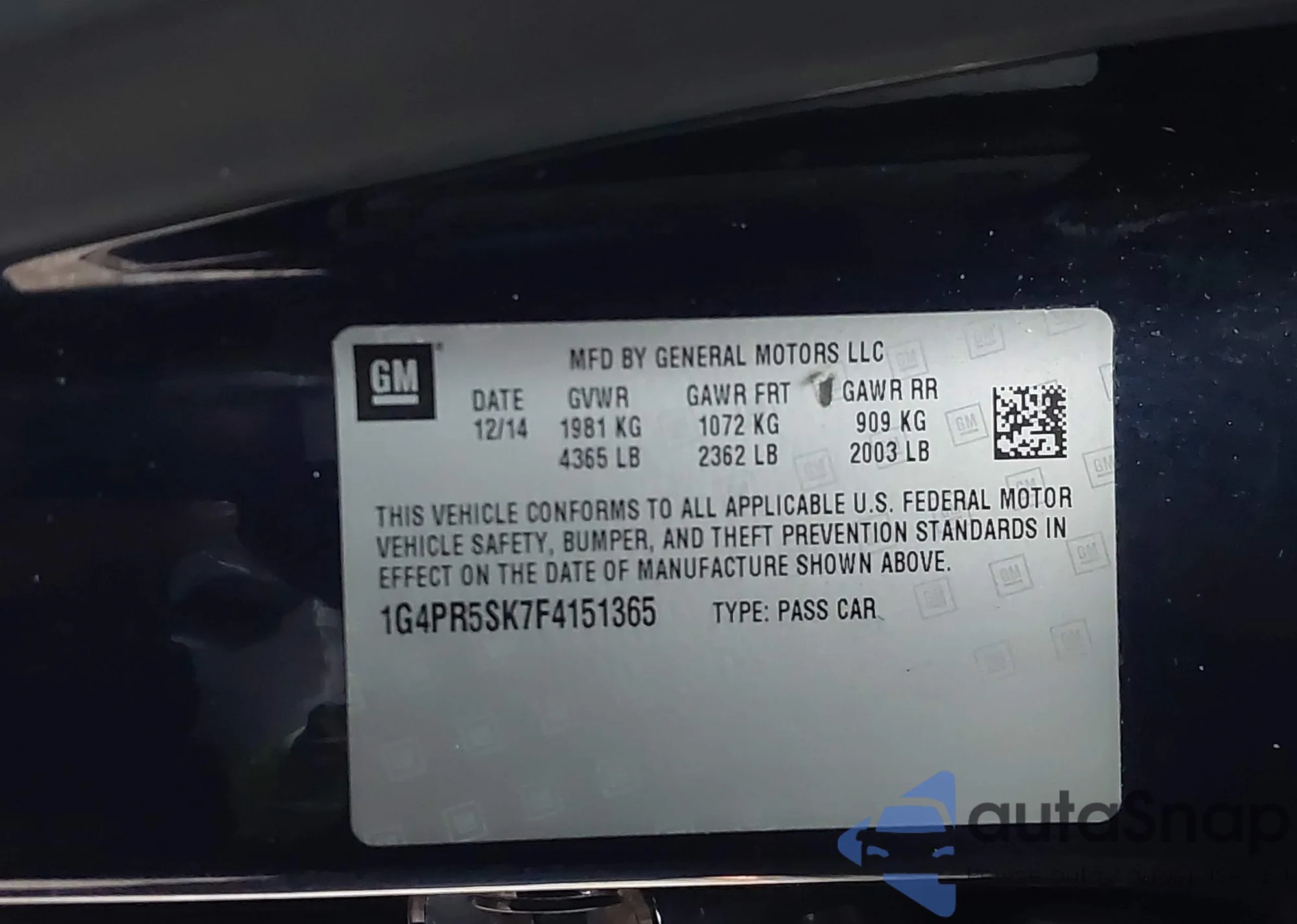 LOT: 44159435 VIN: 1G4PR5SK7F4151365