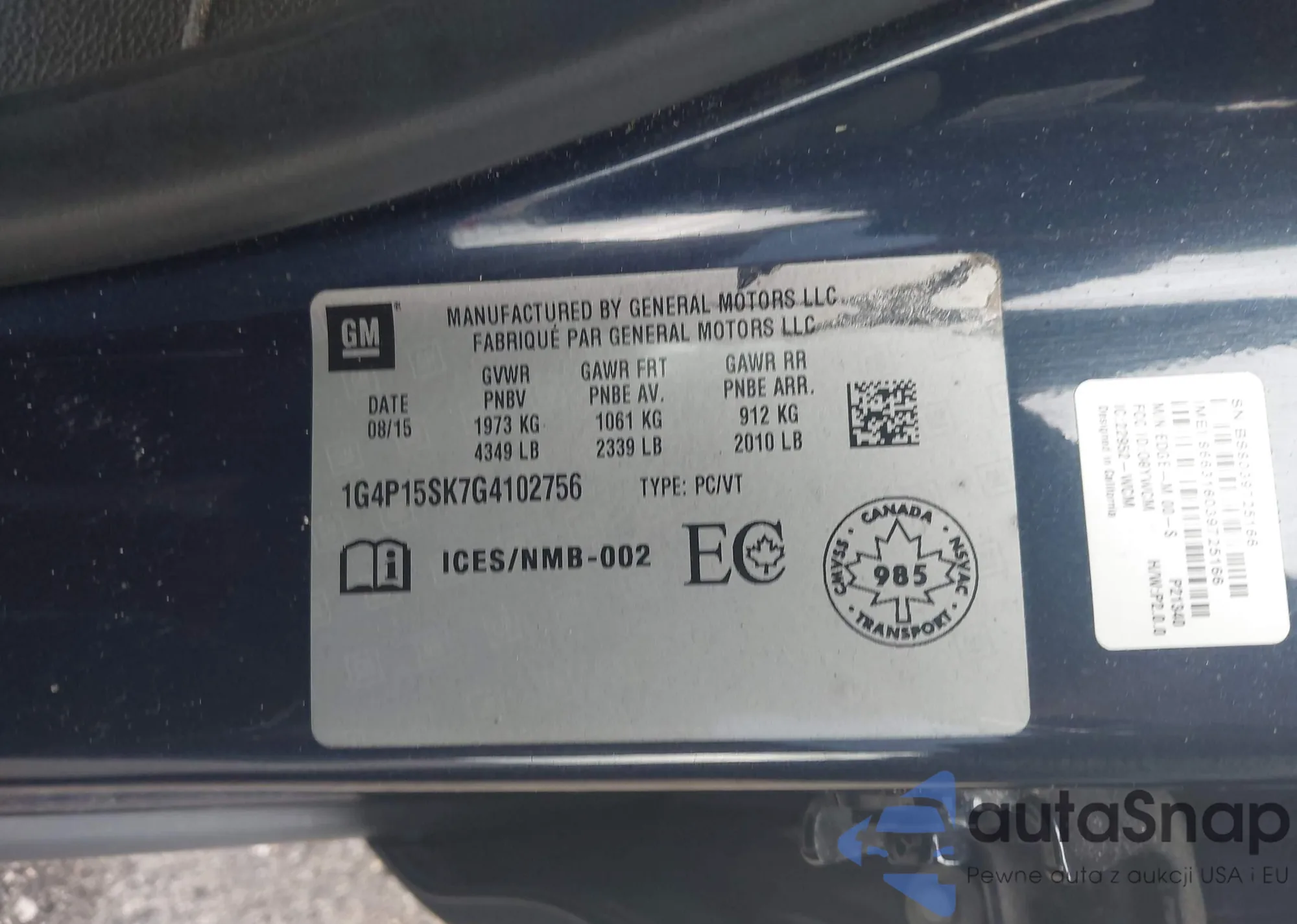 • VIN 1G4P15SK7G4102756