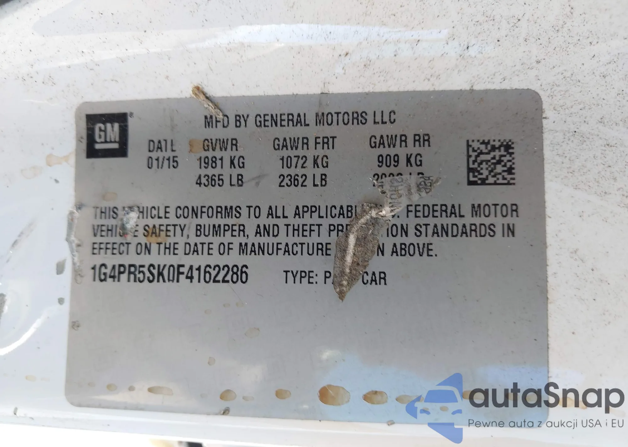 LOT: 44199081 VIN: 1G4PR5SK0F4162286