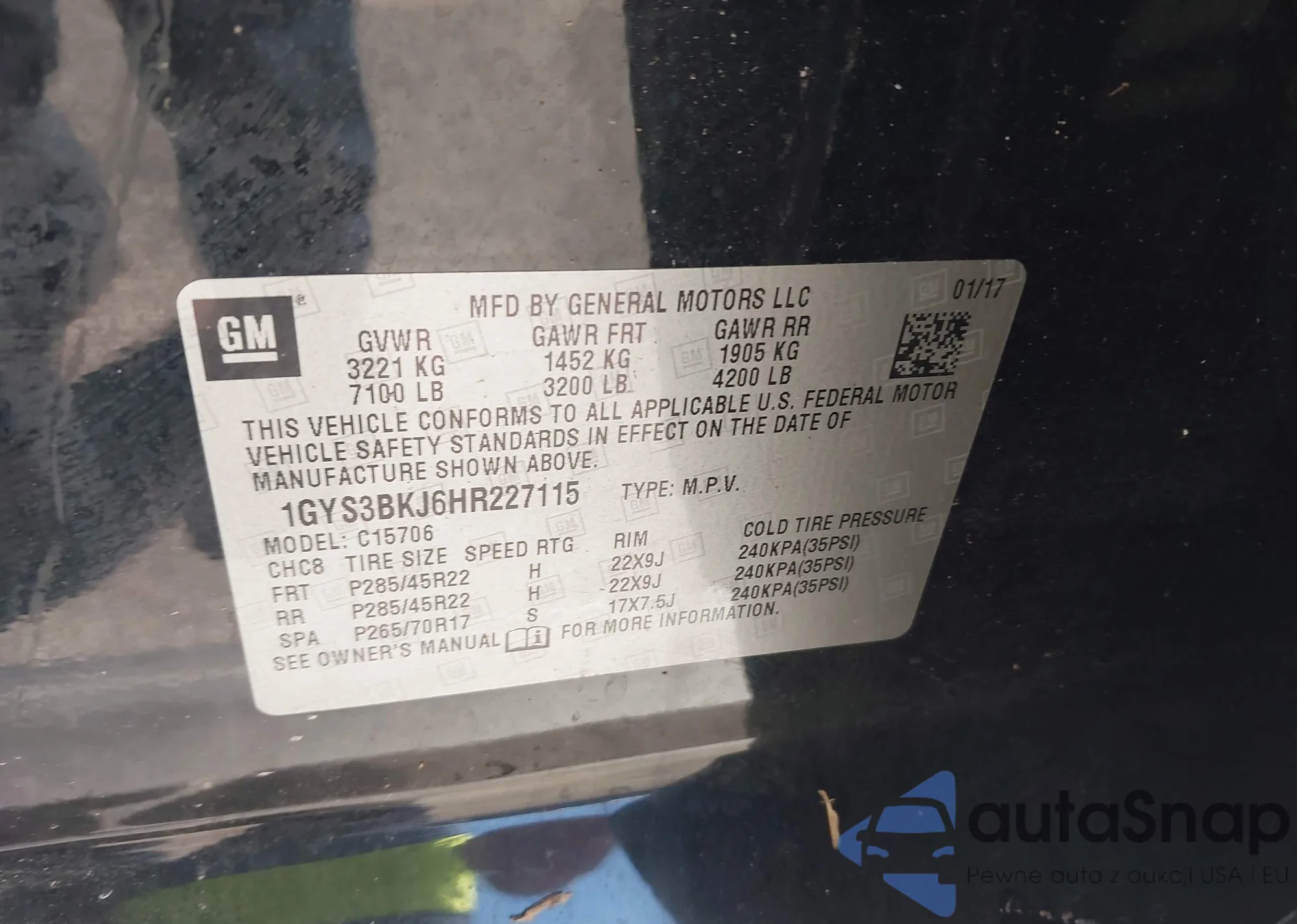 • VIN 1GYS3BKJ6HR227115