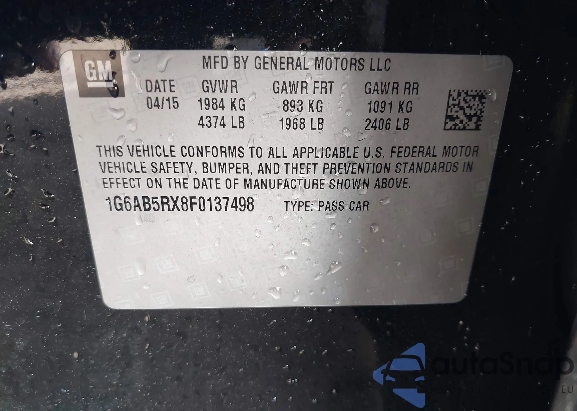 • VIN 1G6AB5RX8F0137498