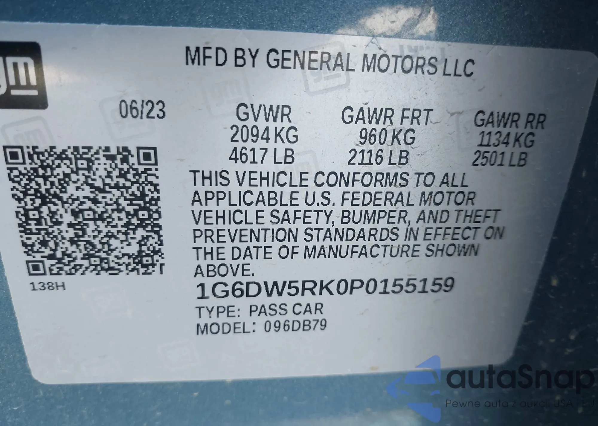 LOT: 44192569 VIN: 1G6DW5RK0P0155159