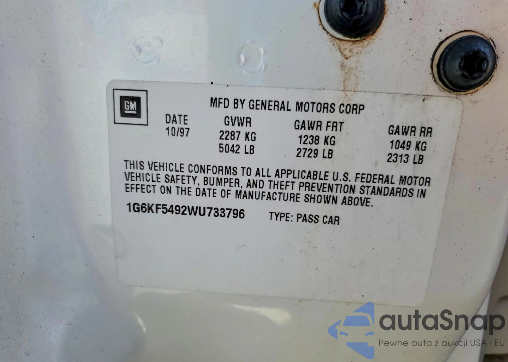 LOT: 79002925 VIN: 1G6KF5492WU733796