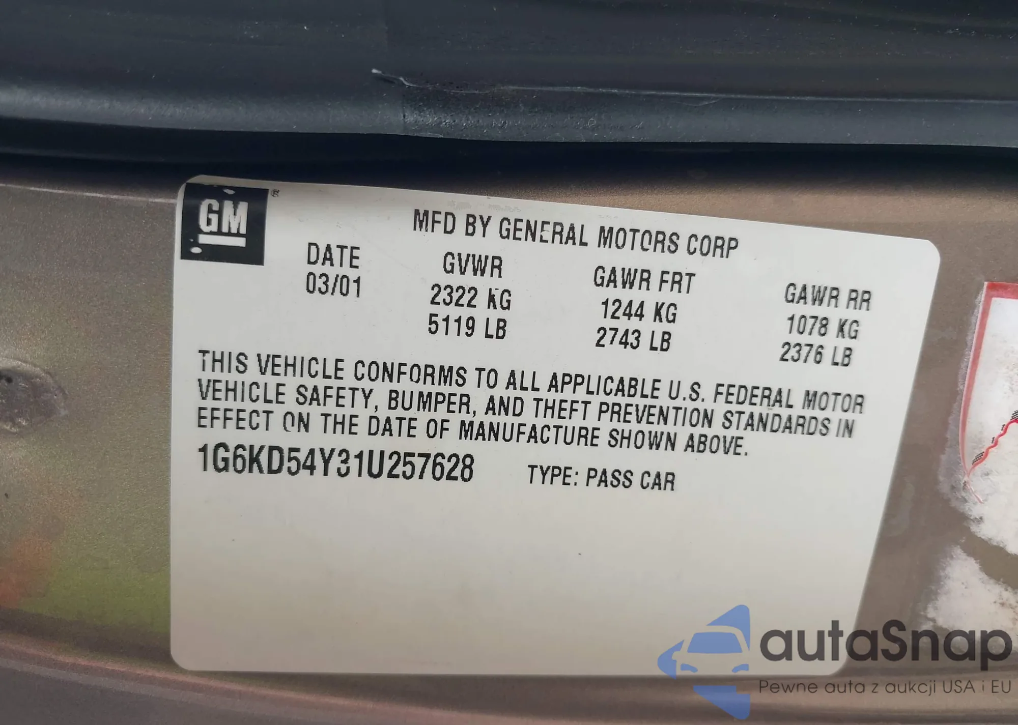 • VIN 1G6KD54Y31U257628