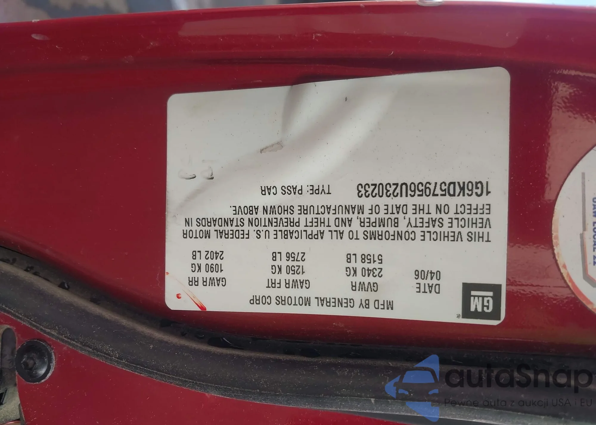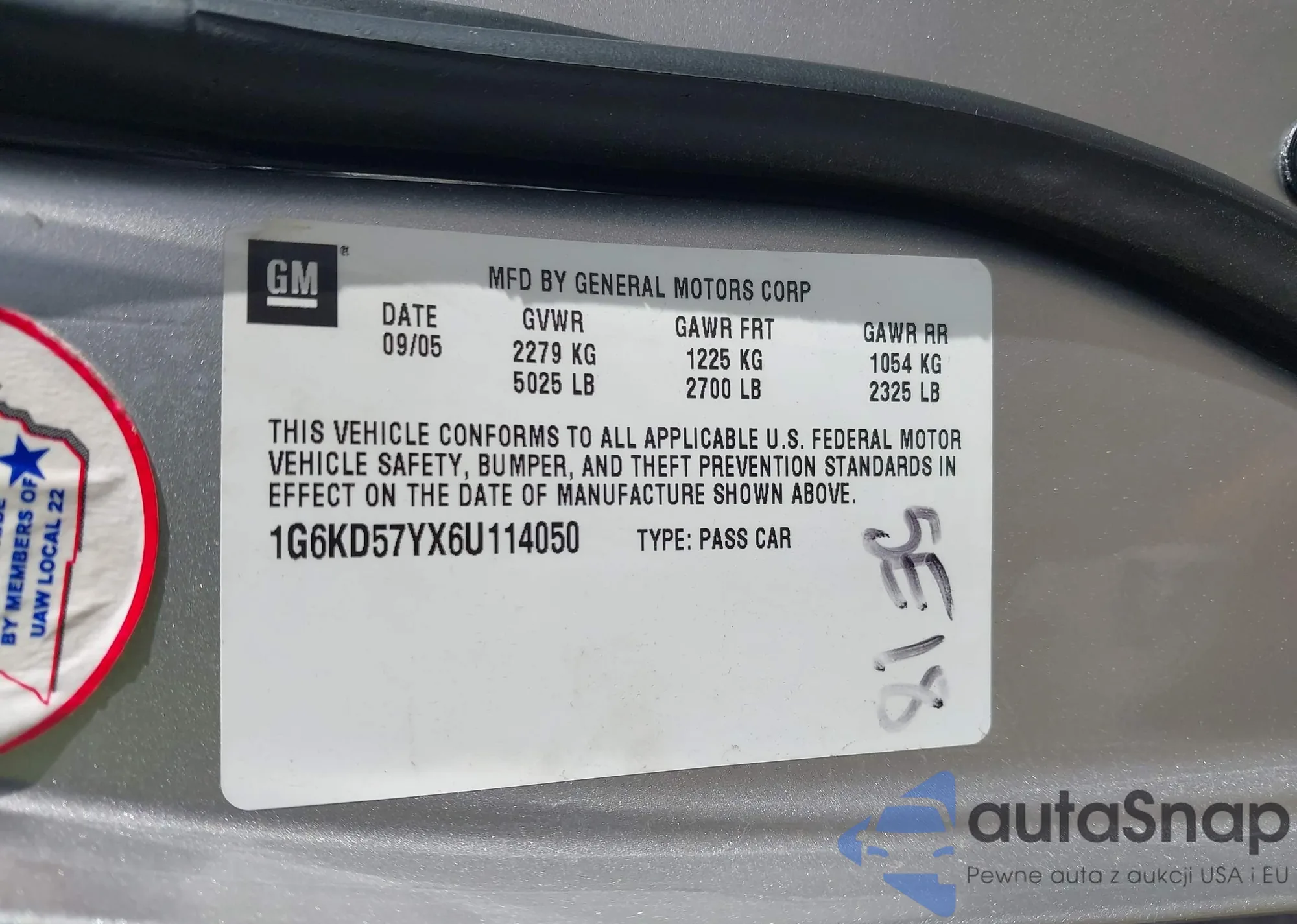 • VIN 1G6KD57YX6U114050