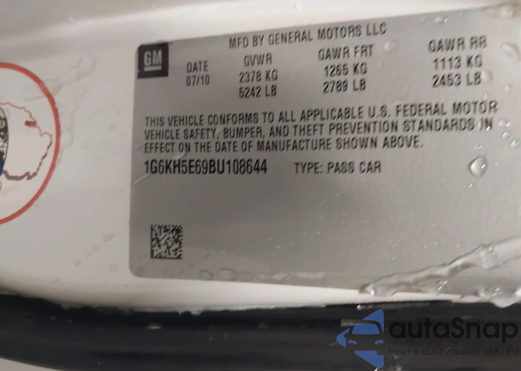 LOT: 44023186 VIN: 1G6KH5E69BU108644