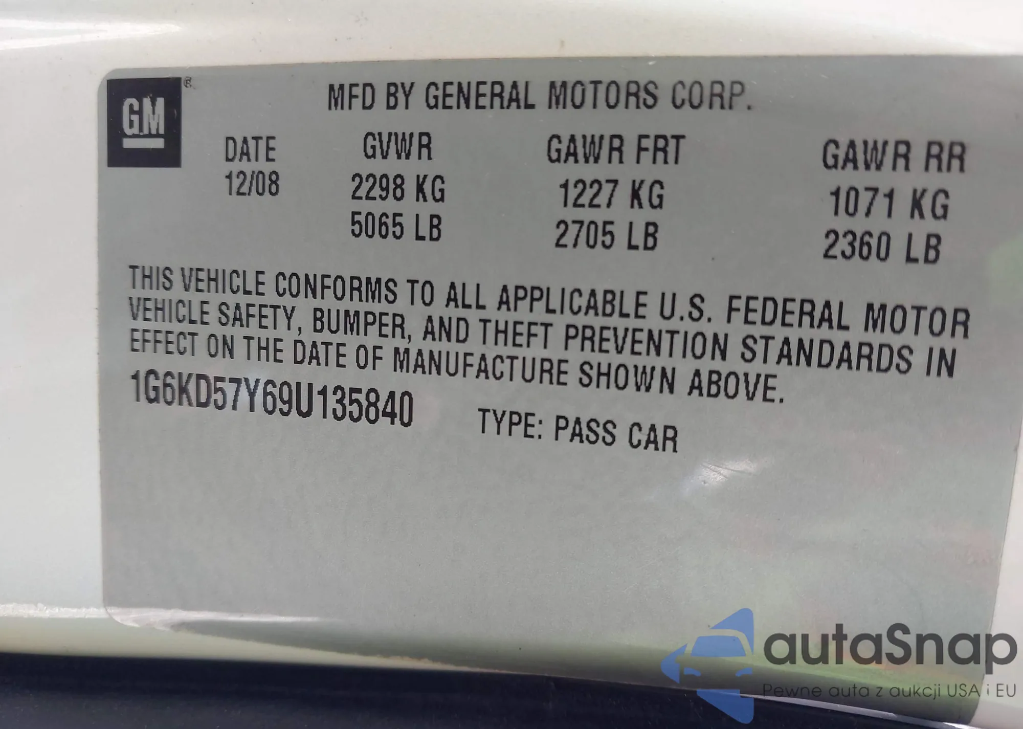 • VIN 1G6KD57Y89U134253