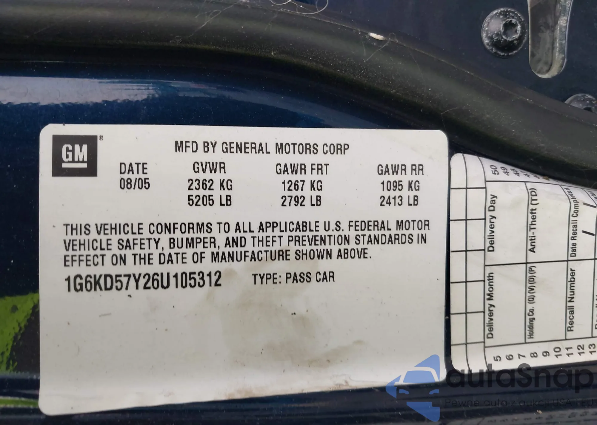 • VIN 1G6KD57Y26U105312