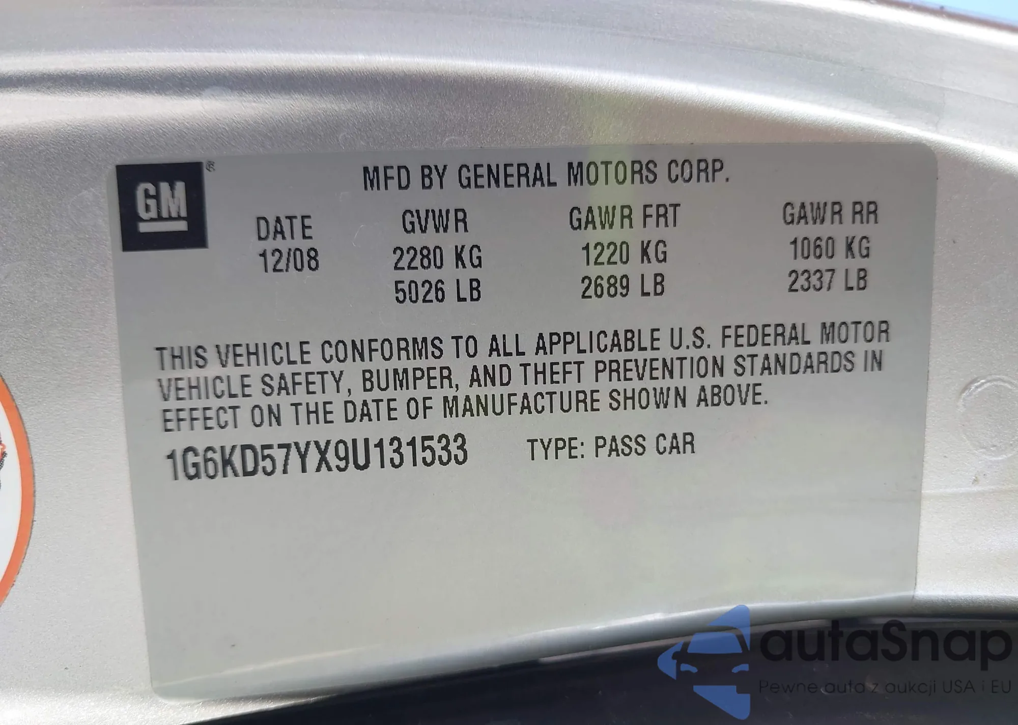 • VIN 1G6KD57YX9U131533