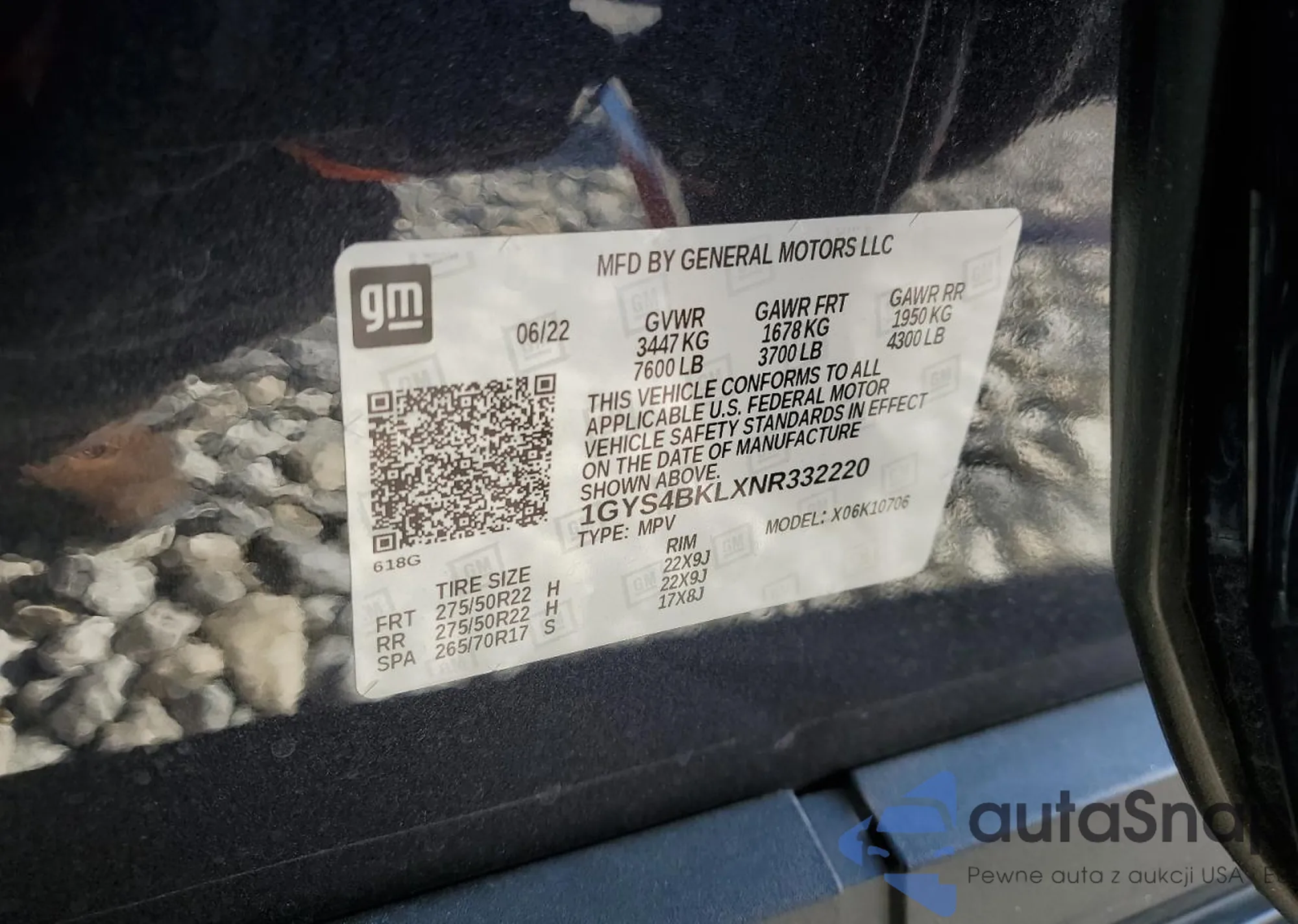 • VIN 1GYS4BKLXNR332220