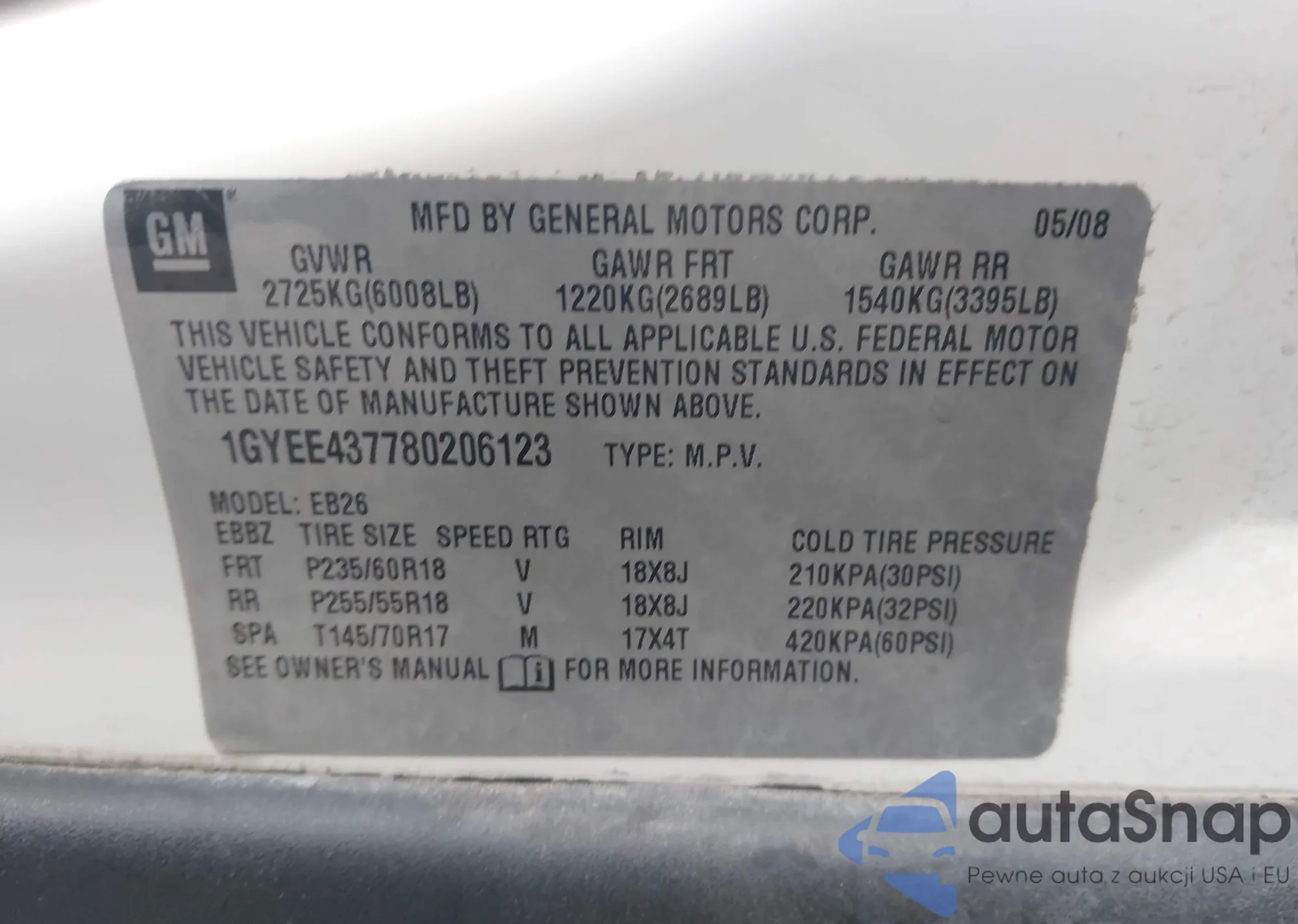LOT: 44036856 VIN: 1GYEE437780206123