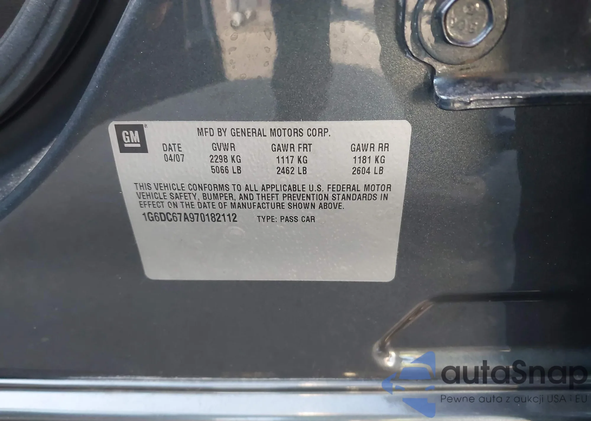 LOT: 44522949 VIN: 1G6DC67A970182112