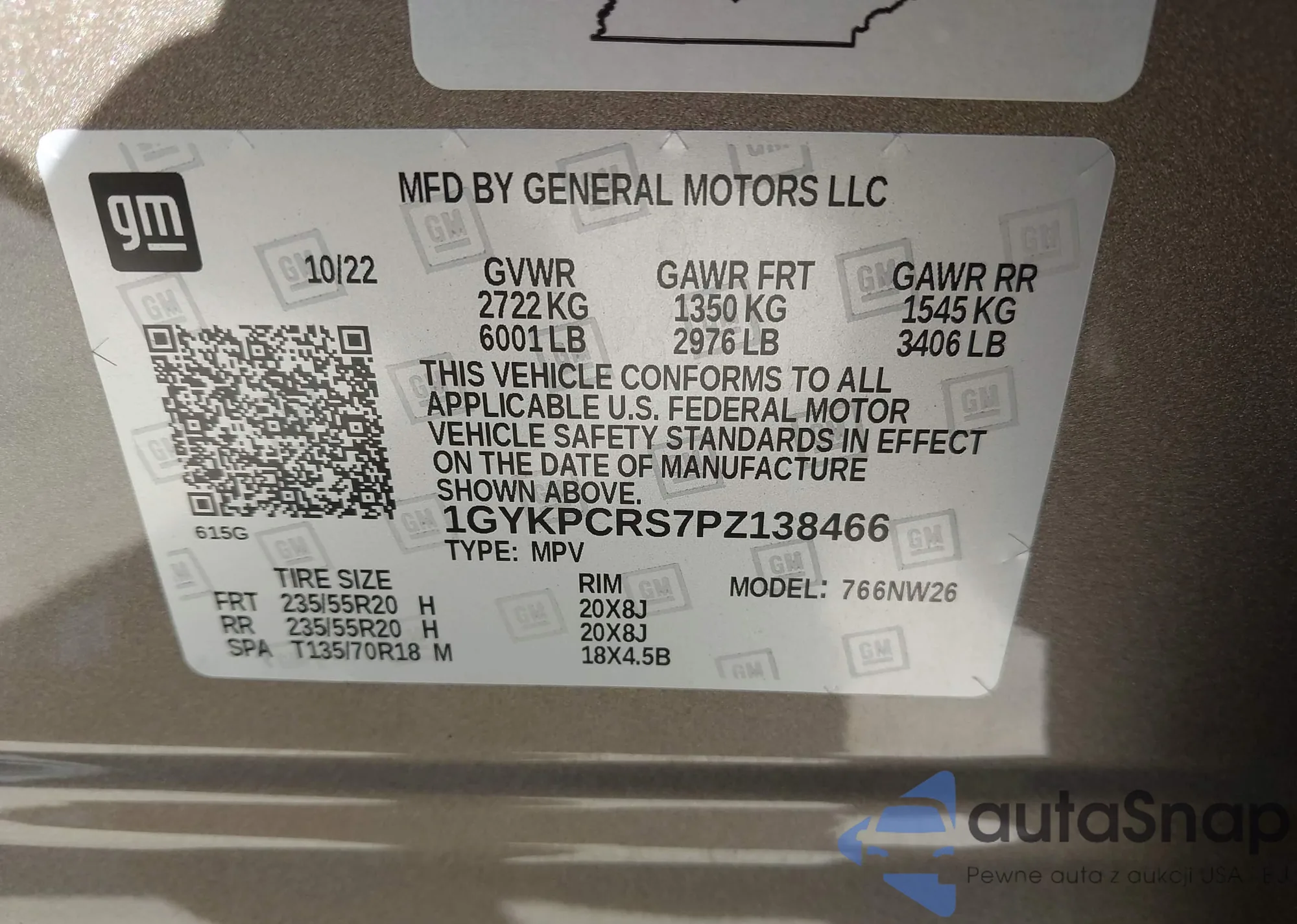 LOT: 44035289 VIN: 1GYKPCRS7PZ138466