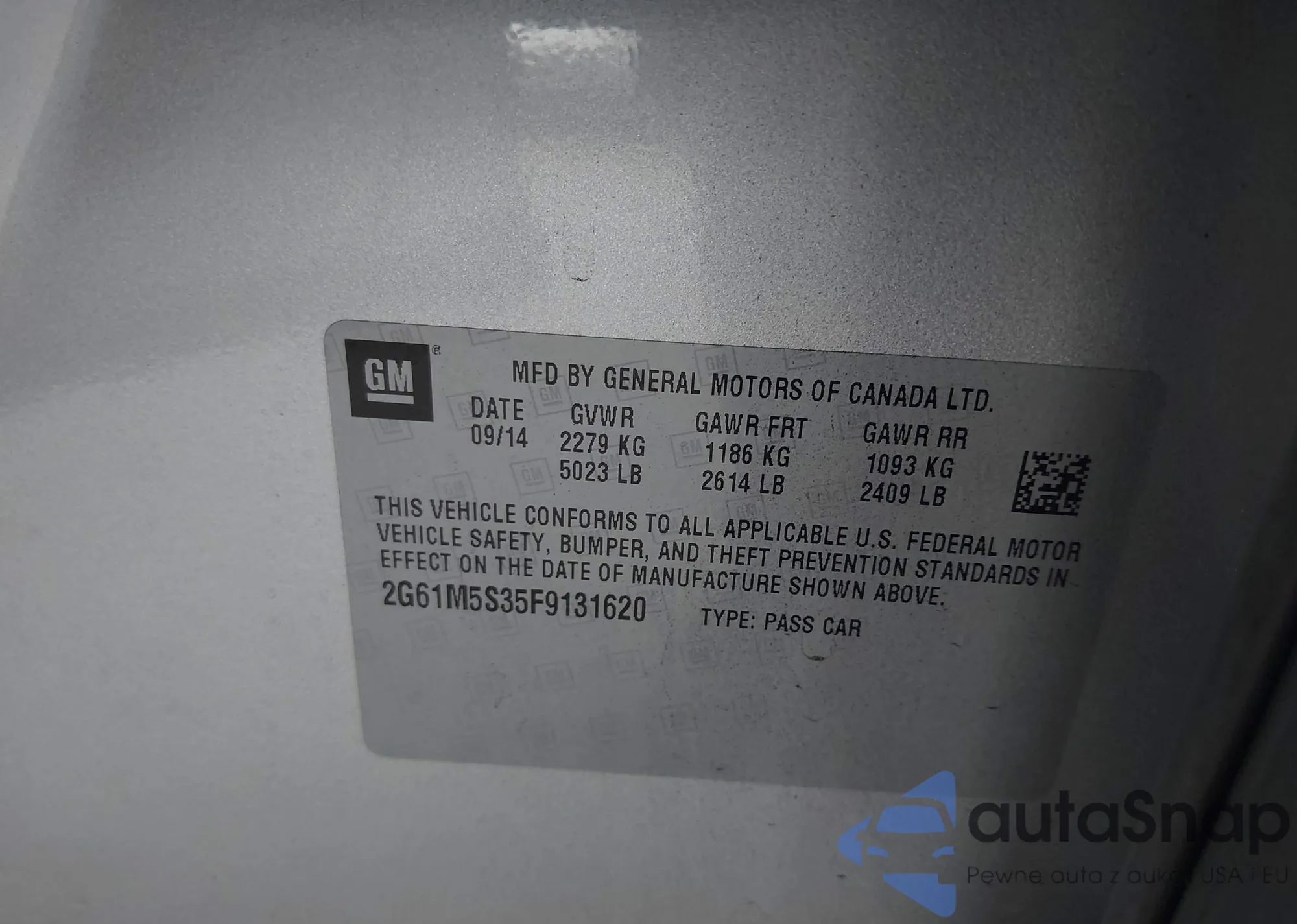 • VIN 2G61M5S35F9131620