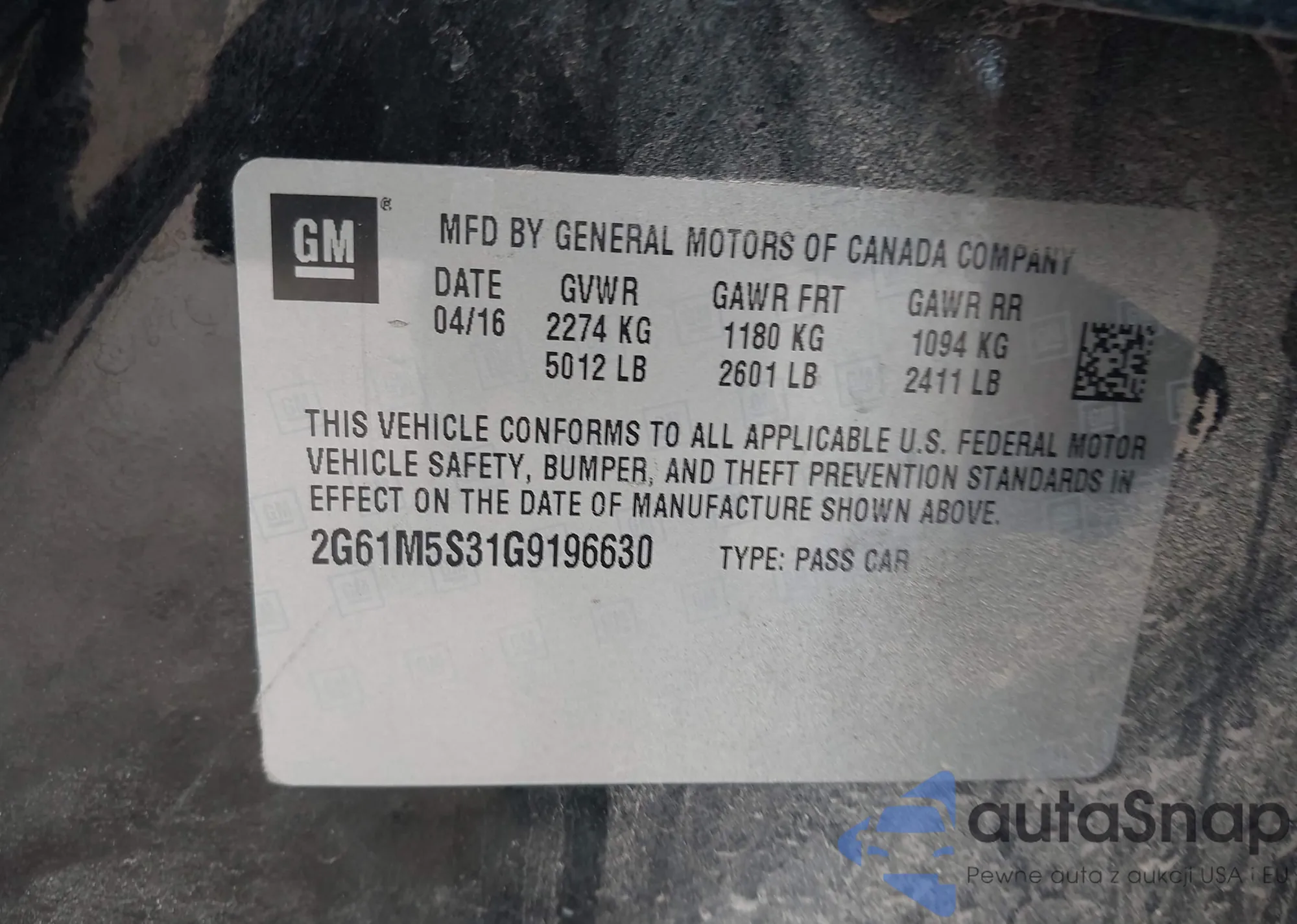• VIN 2G61M5S31G9196630