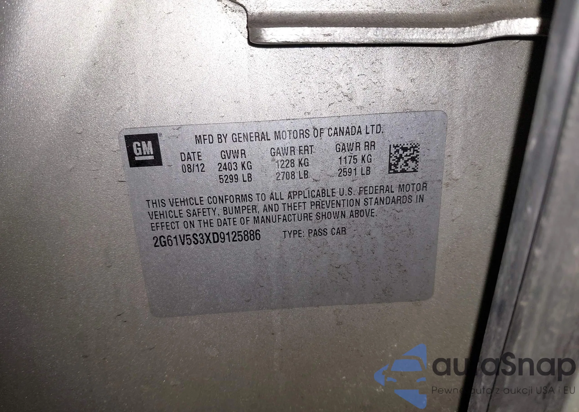 • VIN 2G61V5S3XD9125886