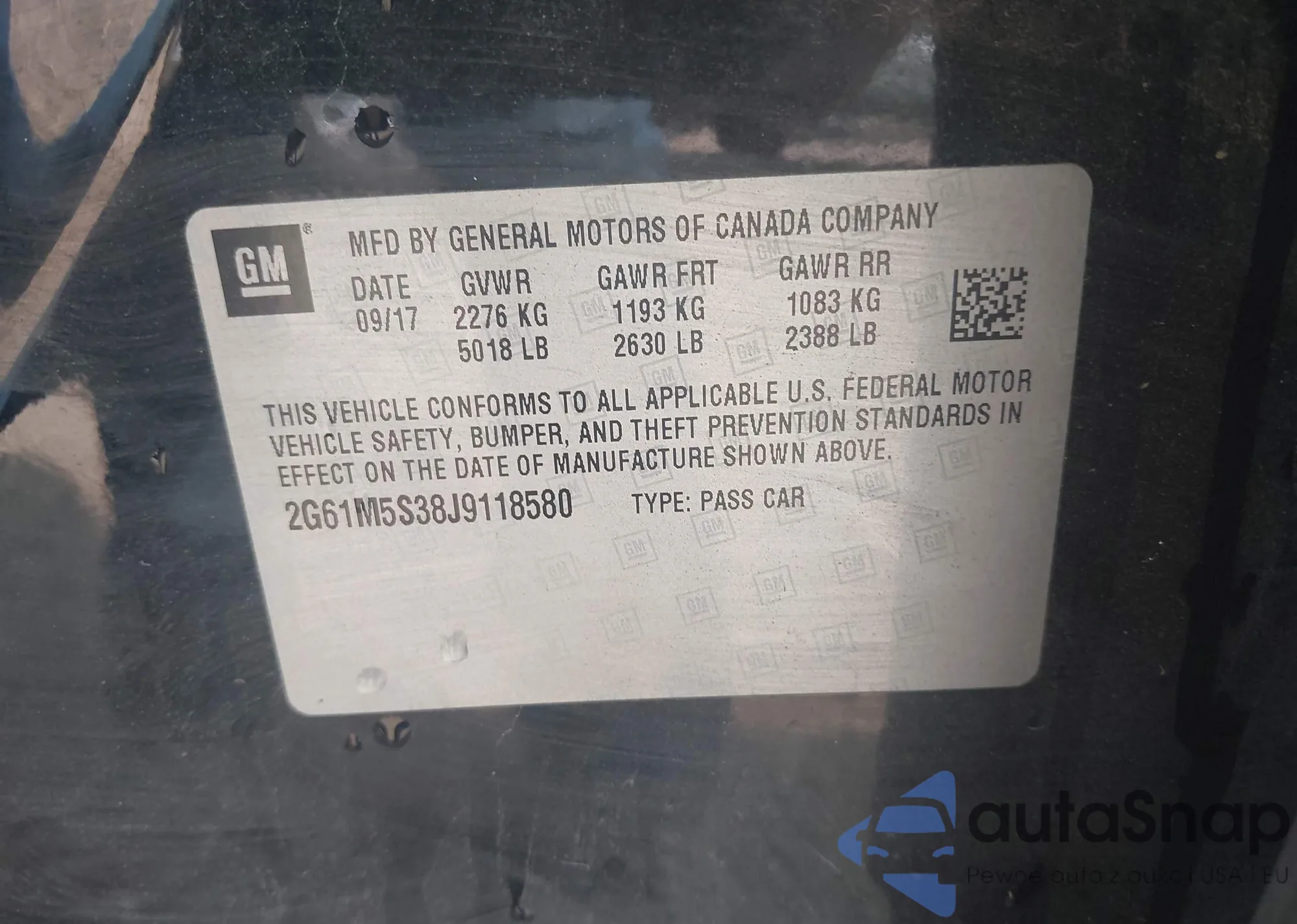 • VIN 2G61M5S38J9118580