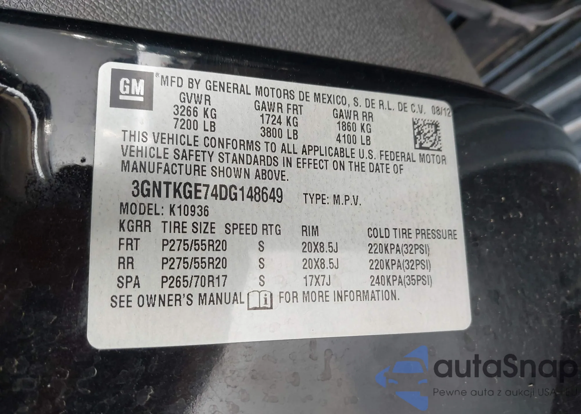 LOT: 44045740 VIN: 3GNTKGE74DG148649
