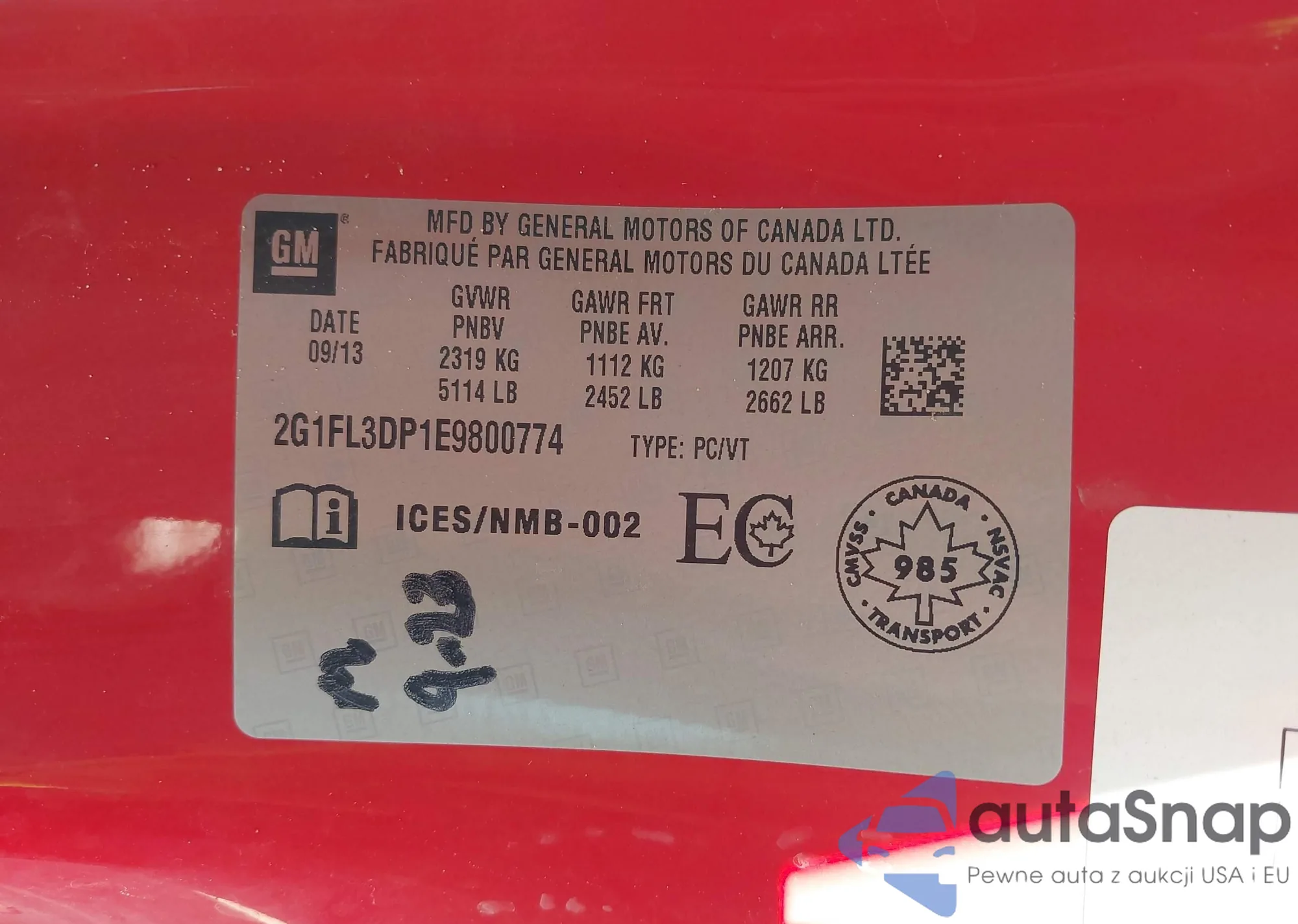• VIN 2G1FL3DP1E9800774