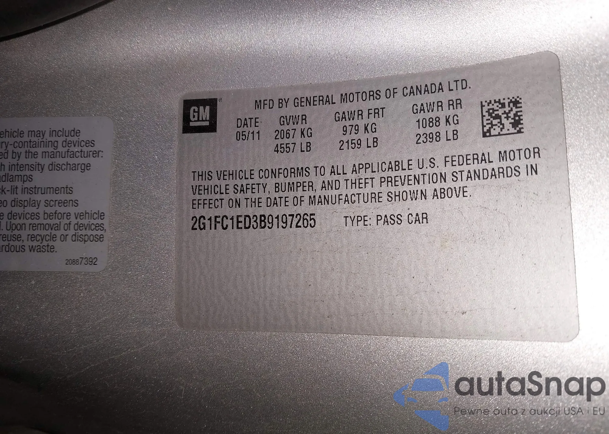 • VIN 2G1FC1ED3B9197265