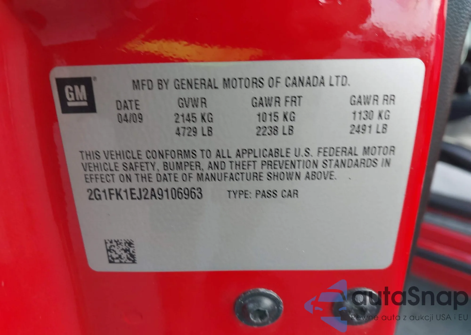 • VIN 2G1FB1E34D9161632
