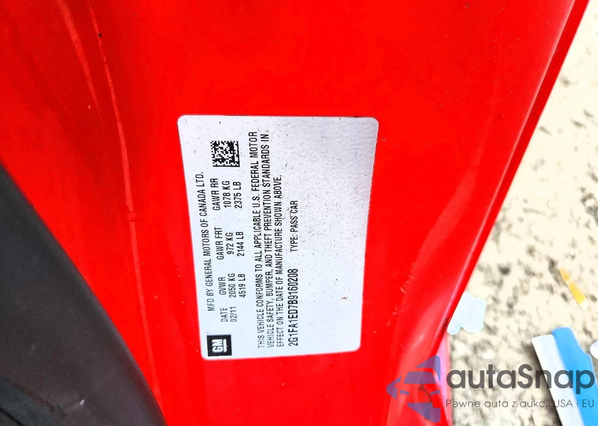 • VIN 2G1FA1ED7B9160208