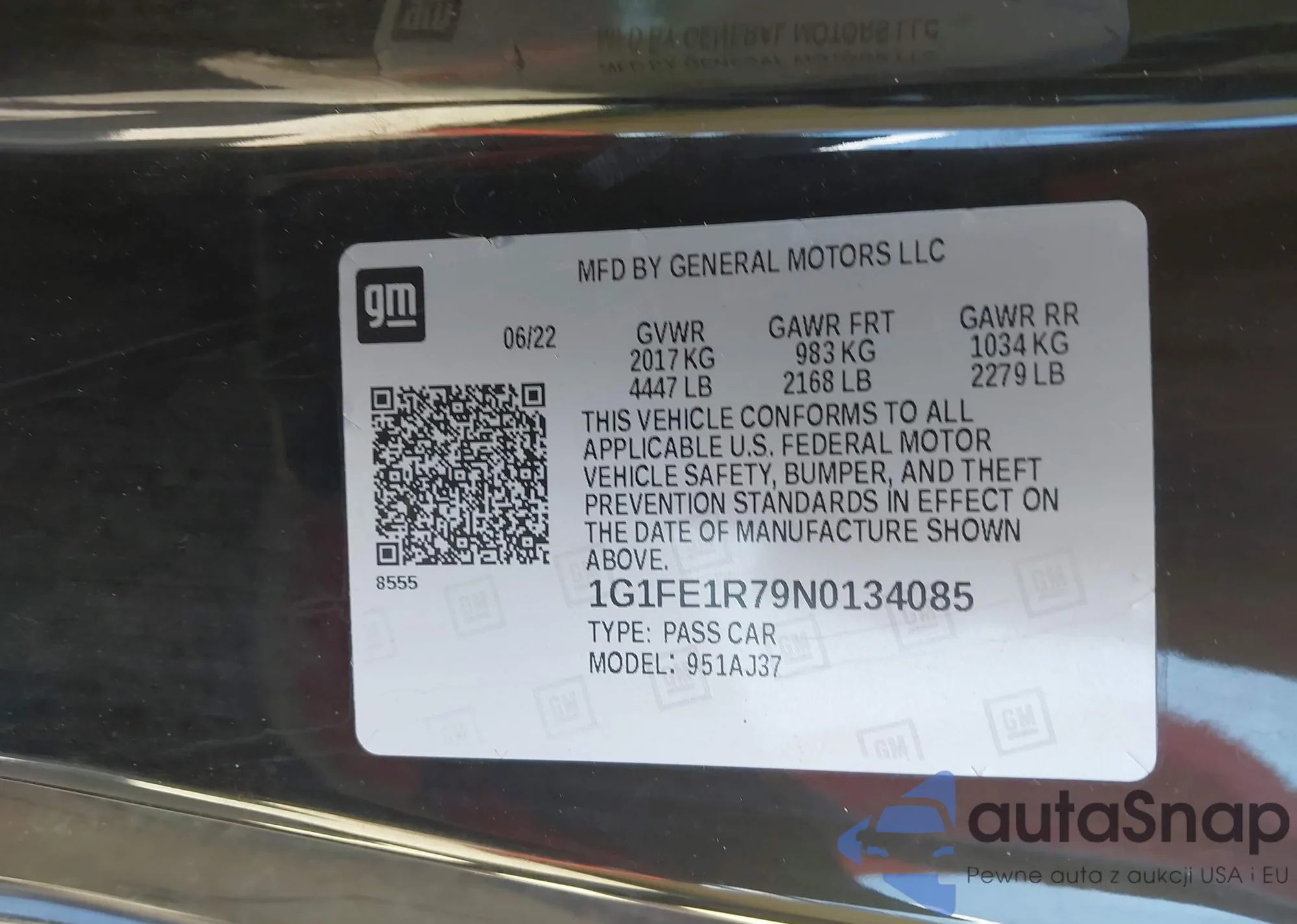 LOT: 43322496 VIN: 1G1FE1R79N0134085