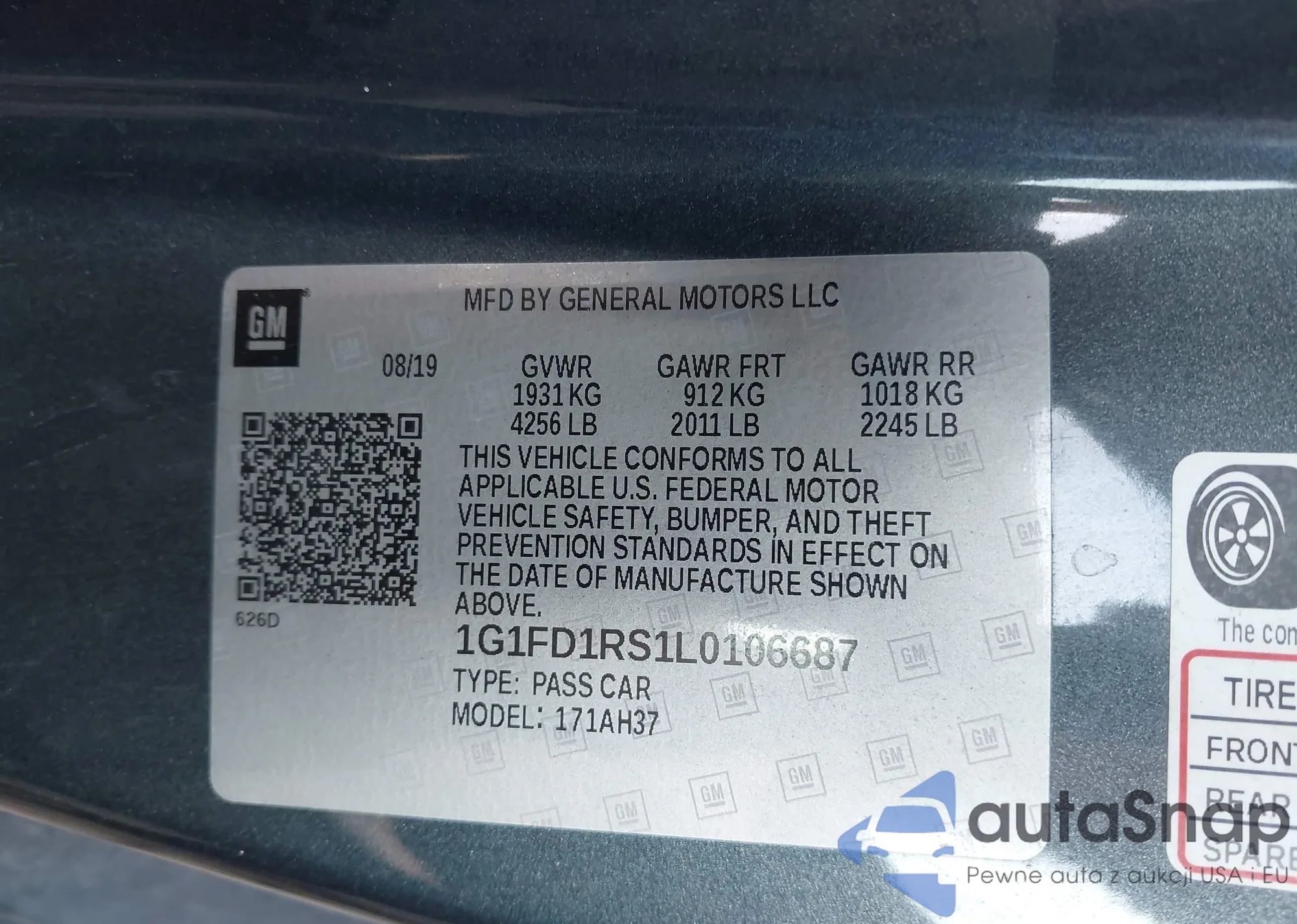 • VIN 1G1FD1RS1L0106687