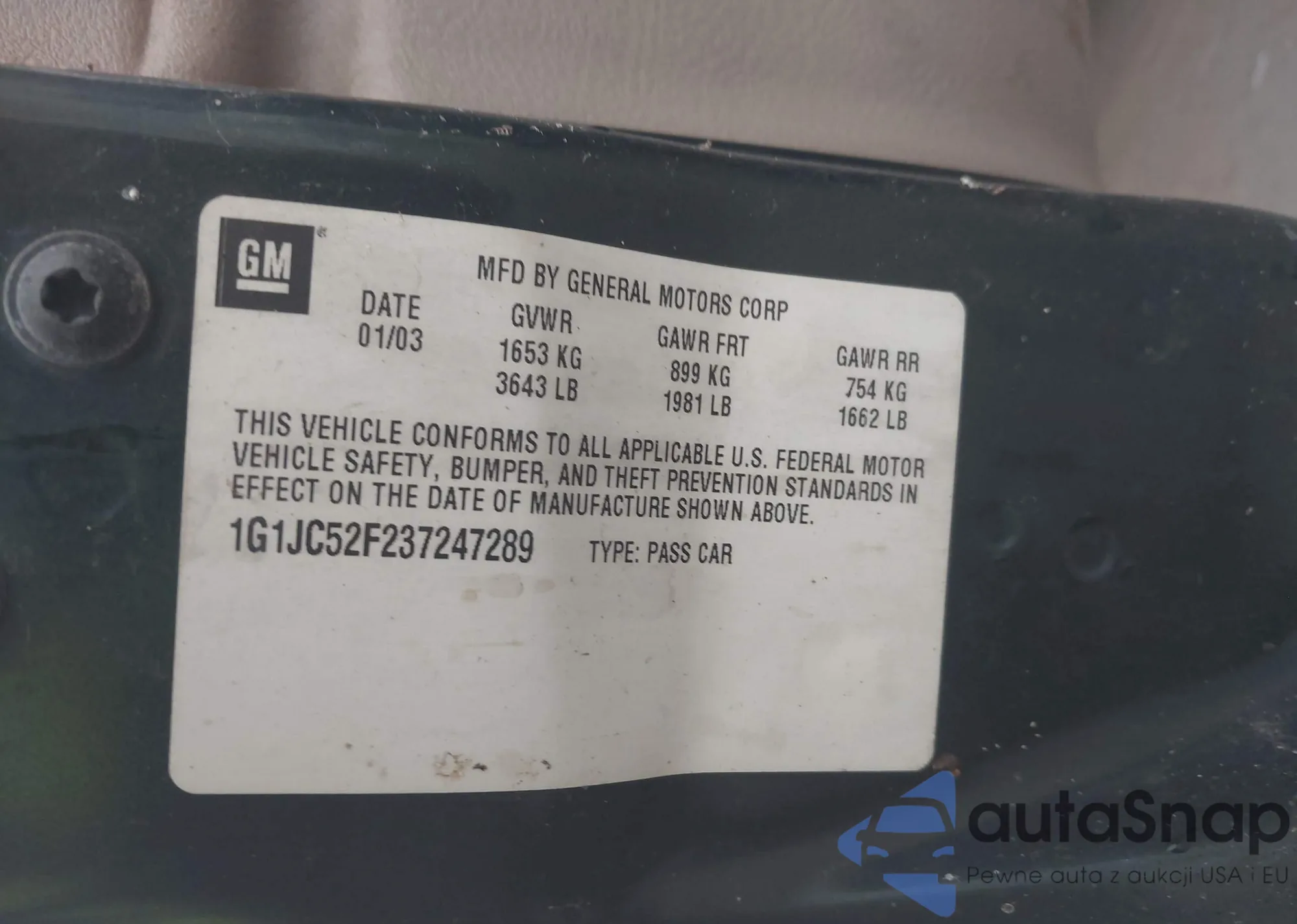 LOT: 44512892 VIN: 1G1JC52F237247289