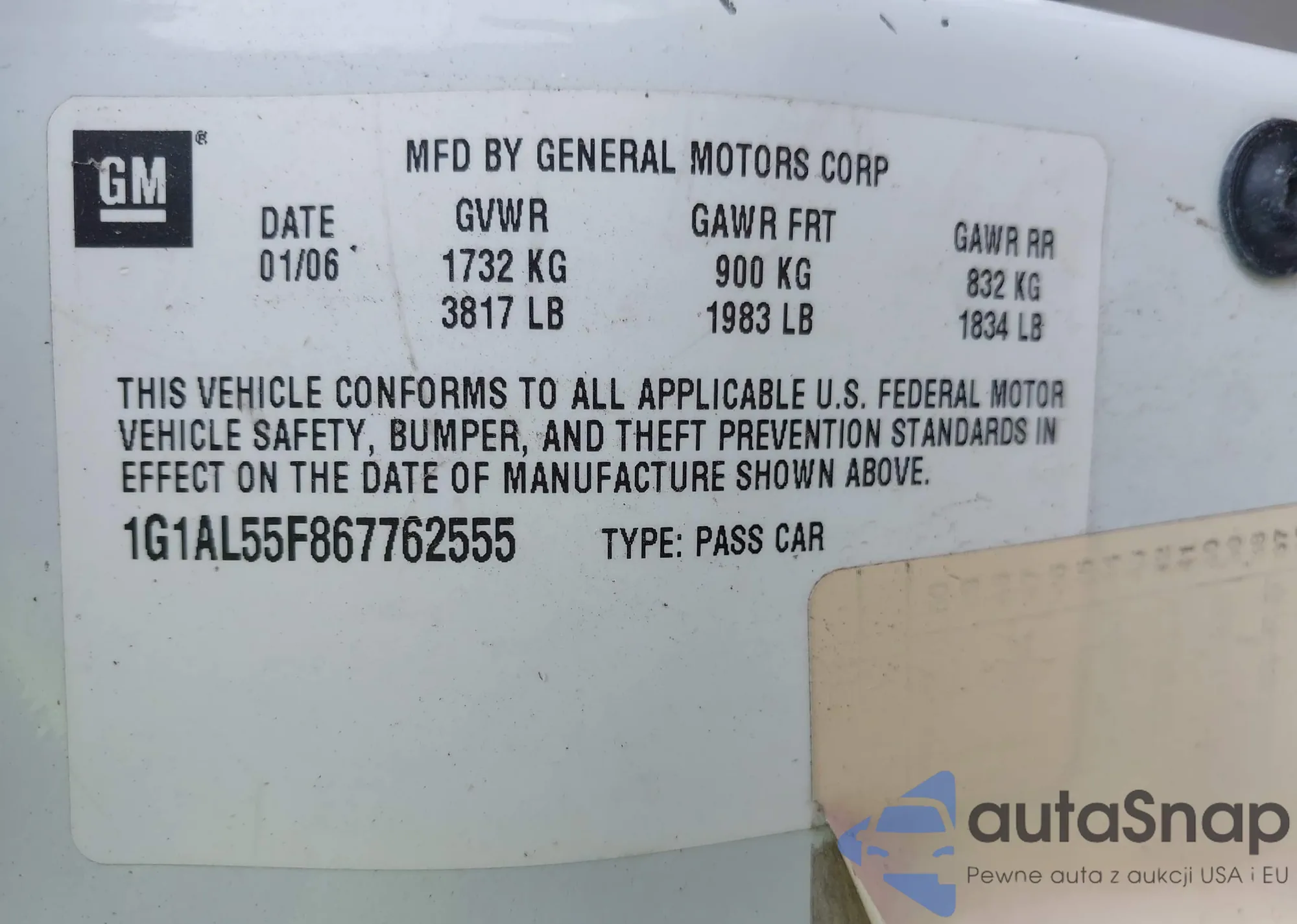 • VIN 1G1AL55F867762555