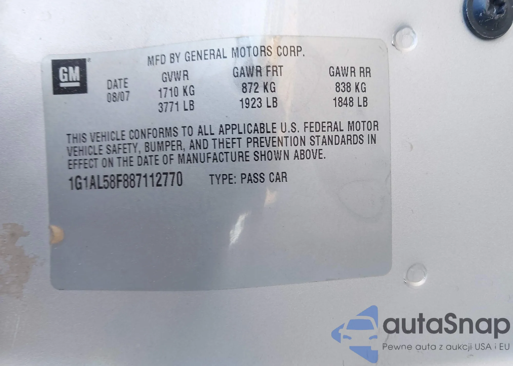 • VIN 1G1AL58F887112770